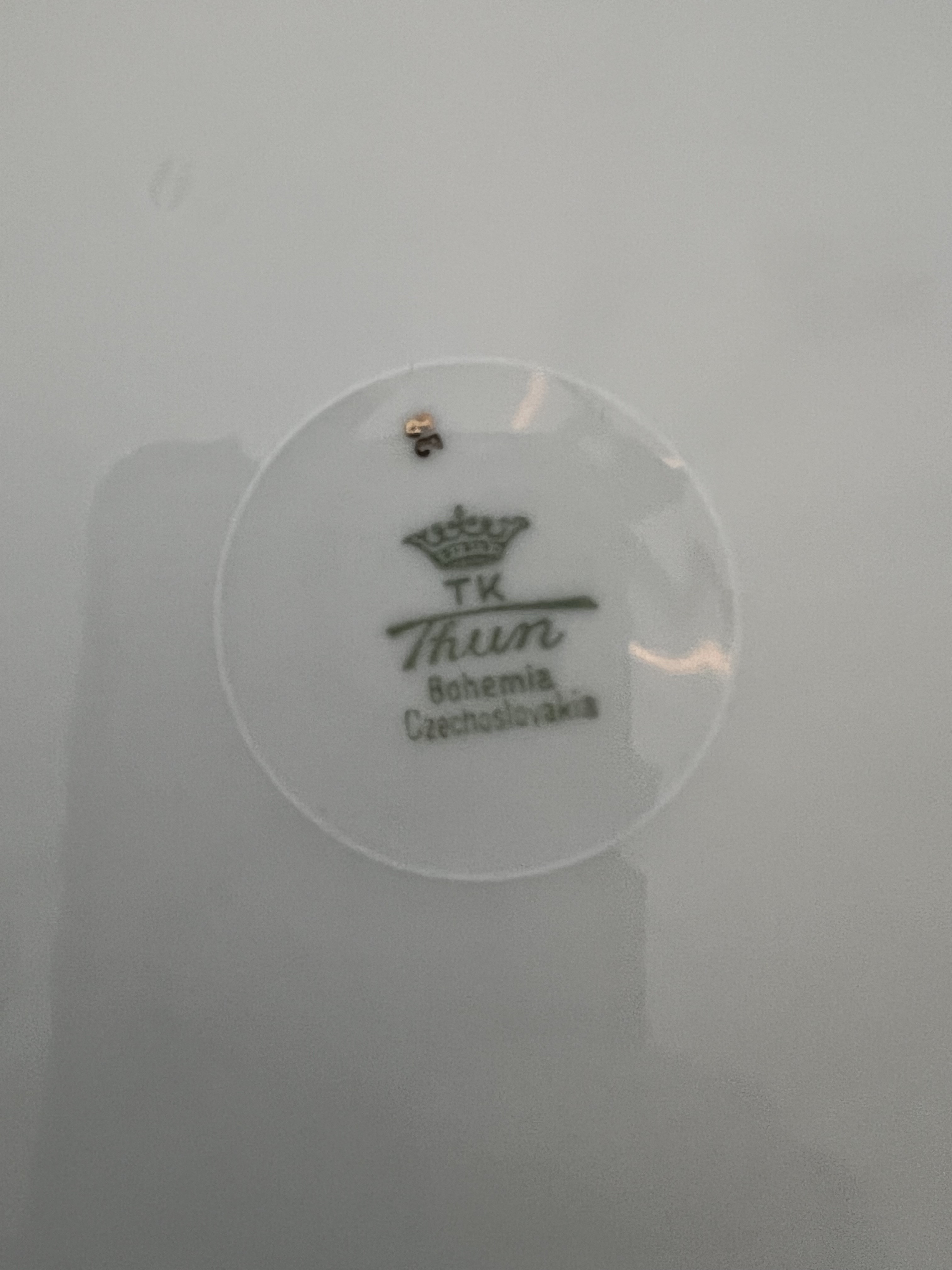 Thun china, established in the 18th century, is known for its high-quality porcelain and intricate designs. The brand became prominent during the 1940s, reflecting the Art Deco and post-war design trends. The use of floral motifs was particularly popular during this time, appealing to a sense of elegance and refinement.