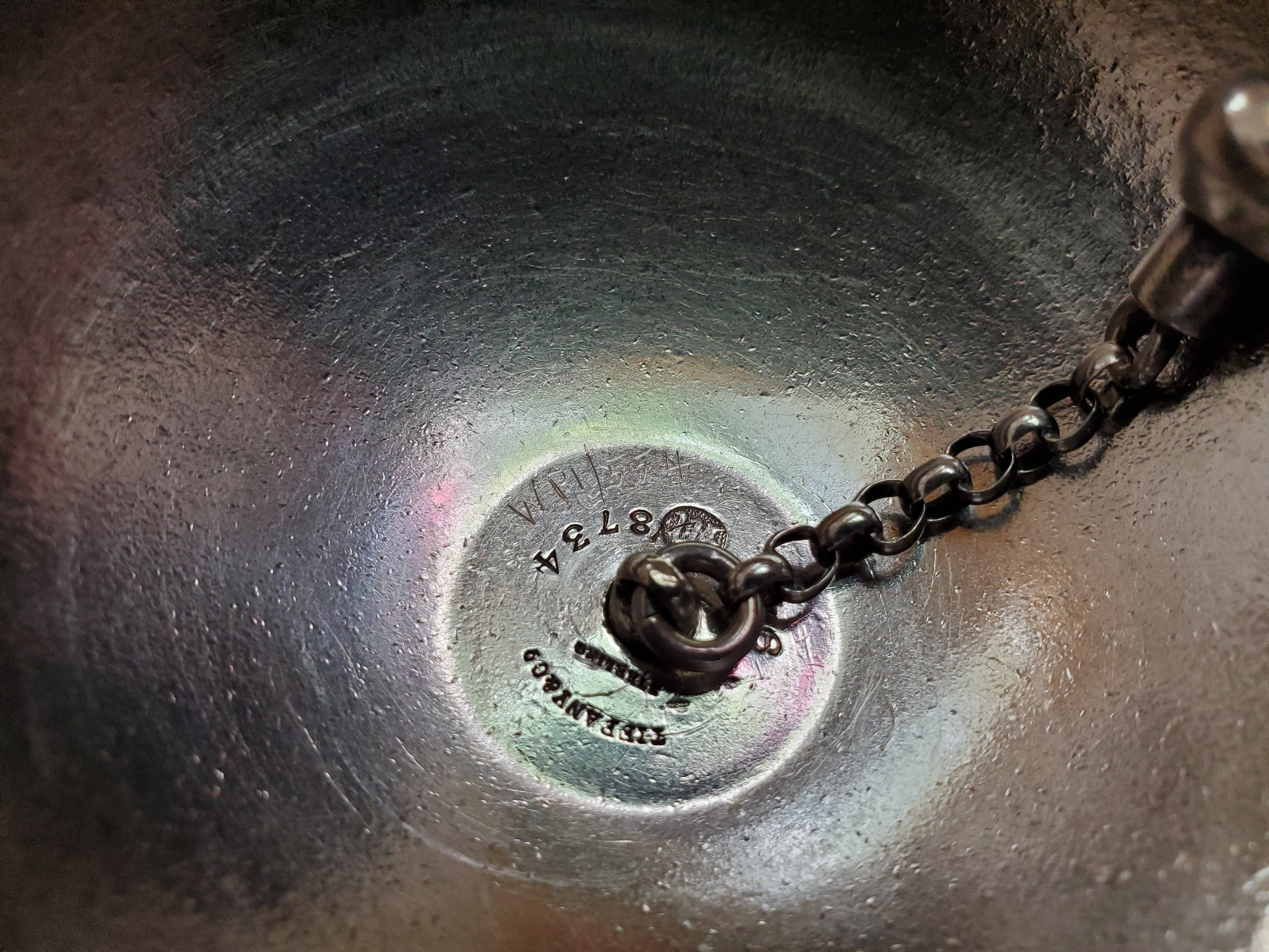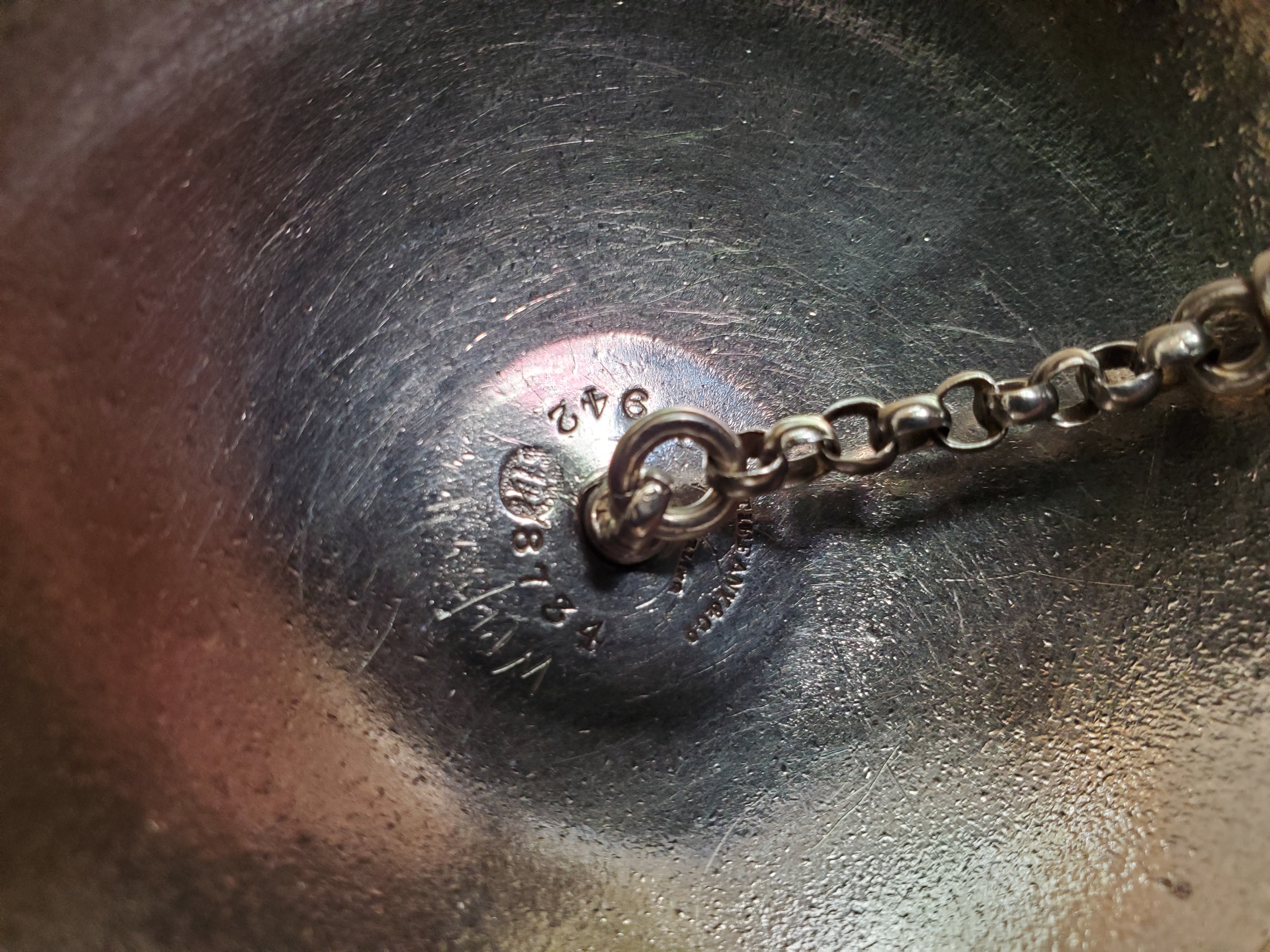 Makers marks. Silver and Tiffany marks. There is one other scratched in mark but unsure what it is. All on underside of bell.