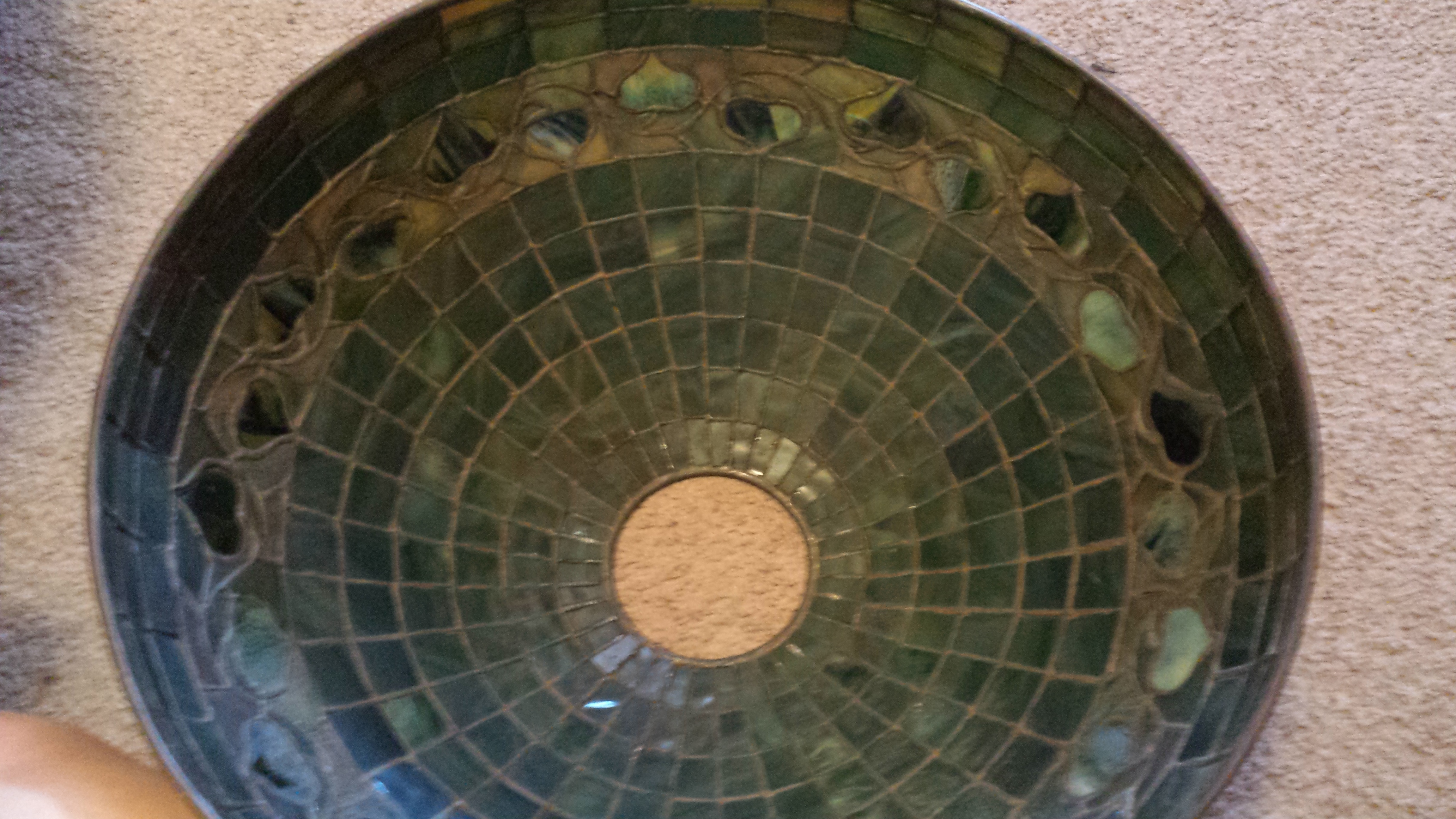 Not sure if my great grandmother purchased it as a lamp or just the shade but had it put on a statue she had professionally converted into a lamp.(large bronze Japanese oni on a 3in onyx base.)