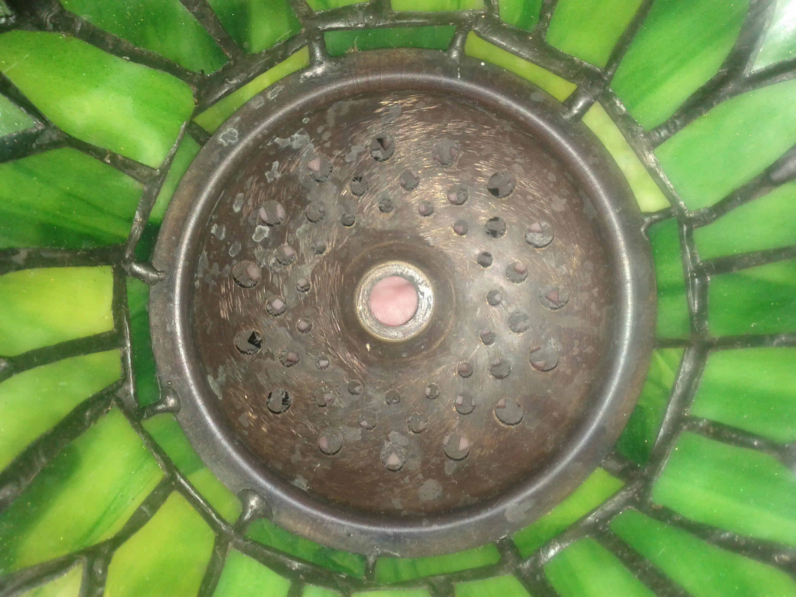 I HAVE A WHAT APPEARS TO BE AN OLD TIFFANY HANGING DRAGONFLY SHADE ONLY. I FOUND IT IN AN OLD HAT BOX IN MY GRANDMOTHERS ATTIC.. SHE HAS PASSED ON SO I CAN NOT ASK HER WERE OR WHEN SHE GOT THIS, WERE FROM BROOKLYN,QUEENS NEW YORK, I BEEN SEARCHING EVERYWERE FOR THE SAME STYLE BUT I ONLY GET SOMETHING CLOSE, THIS ONE SEEMS UNIQUE, THERE IS A METAL TAG WELDED ON THE INSIDE BUT IT IS NOT VERY LEGABLE LOOKS LIKE IT SAYS KENNEDY, MAYBE SOMEONE CAN HELP ME OUT ON IDETIFING THIS SHADE ITS VERY PRETTY ..