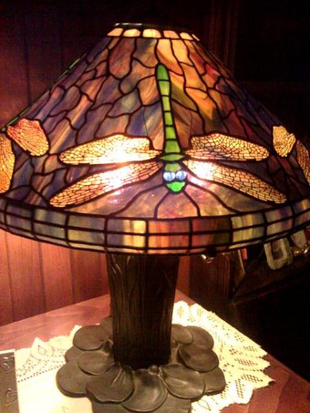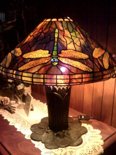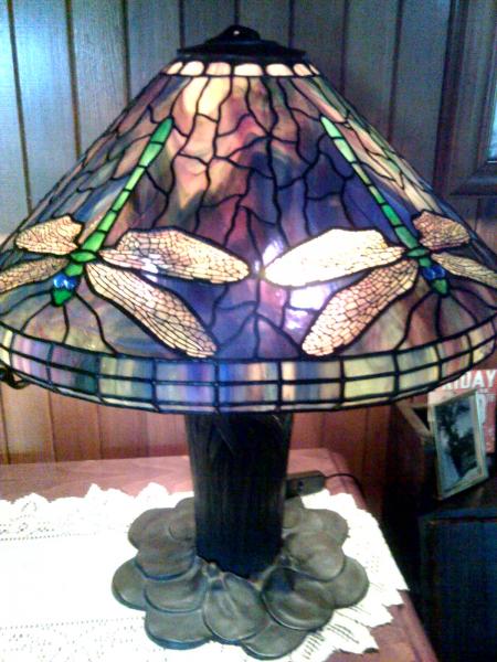 I fell in love with this lamp which I found in a little second hand shop, after noticing the stamps inside, I called the Tiffany Studios in New York and they told me that although it wasn't made at the Tiffany Studios, Louis was at the Panama Exhibition in 1915 and that it could be one of his exhibition pieces. I would love to find out the history of my lamp and also the true value of it. I have been told that the base is called a 'cat tail lily pad base. I may consider selling if the price is right.