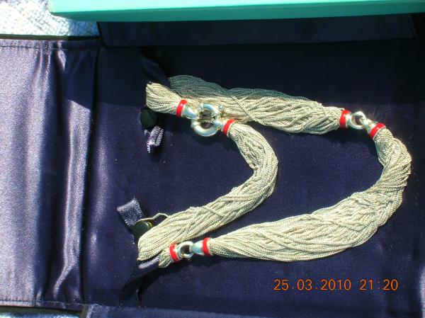 received as gift over 10 years ago. has tiffany embedded in clip. multi strain of silver. saw bracklet to match on ebay at one time for 495. i have never worn it.