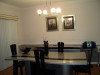 There are six chairs, one with arms, and all have been badly reupholstered first by my mom and then me. A dog chewed on one of the two little wood pieces on the table bottom connecting pieces. Other than that it's just dusty from being in our garage for fifteen years.