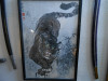 Japanese Crouching Tiger. Silk painting. Signed and framed.
