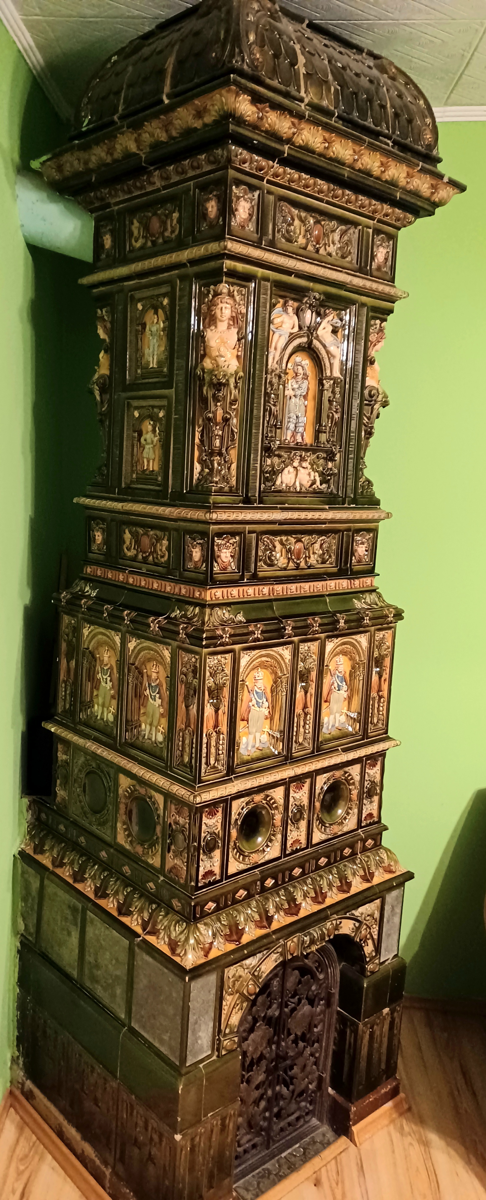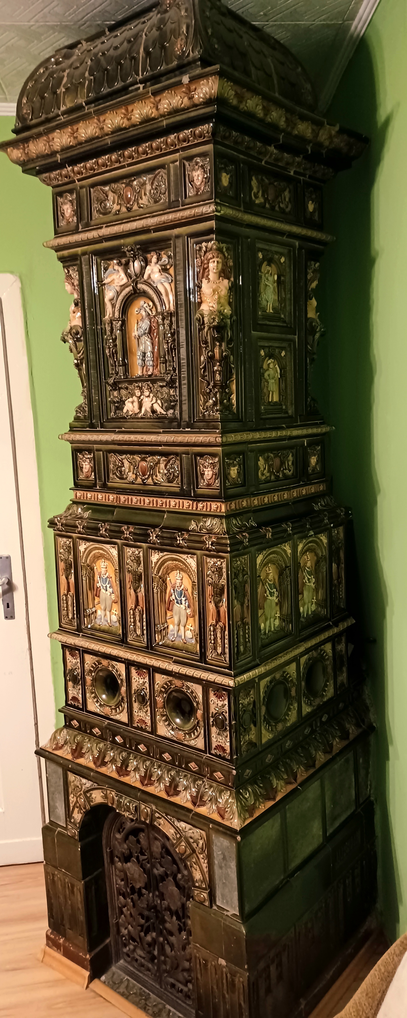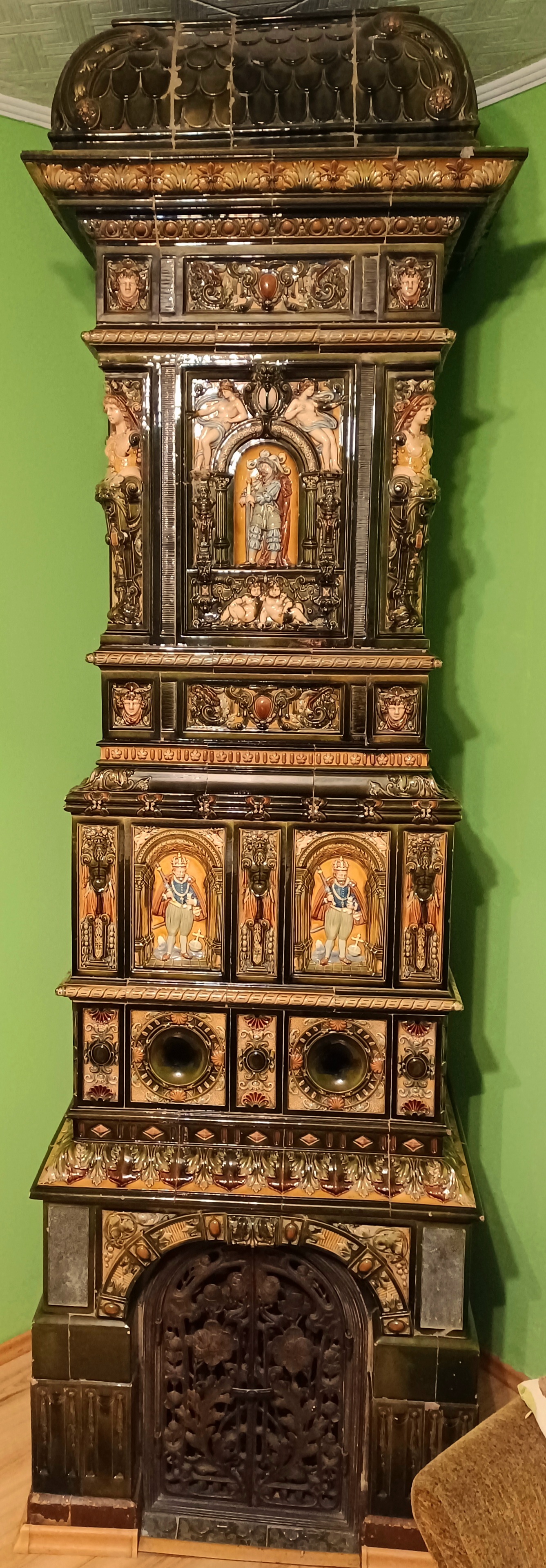 For sale: an antique freestanding tiled stove in excellent condition, from the early period of the Neo-Renaissance in Poland, along with Secessionist doors. It has been owned by the first owner for at least 99 years. Please provide a professional and specific valuation