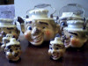 Vintage Tilso Ceramics from Japan: Teapot, Creamer & Sugar, Grease?, 4 Measuring Cups. All are in pretty good shape, the teapot looks the most used.