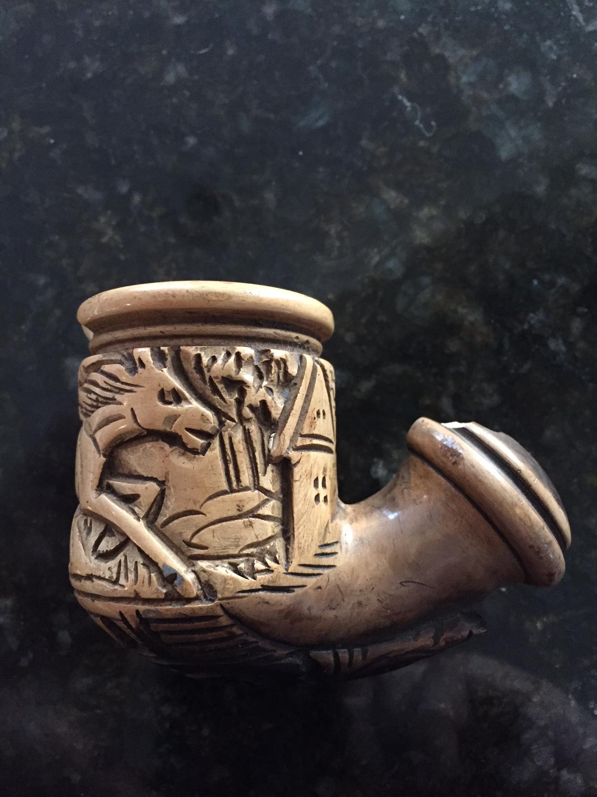 Carved tobacco pipe with the date 1807 carved into it. It has a galloping horse relief carving with a house and forest in the background. There are a couple of places where it is broken. I just really enjoy learning about this, so any information would be great! Thanks!