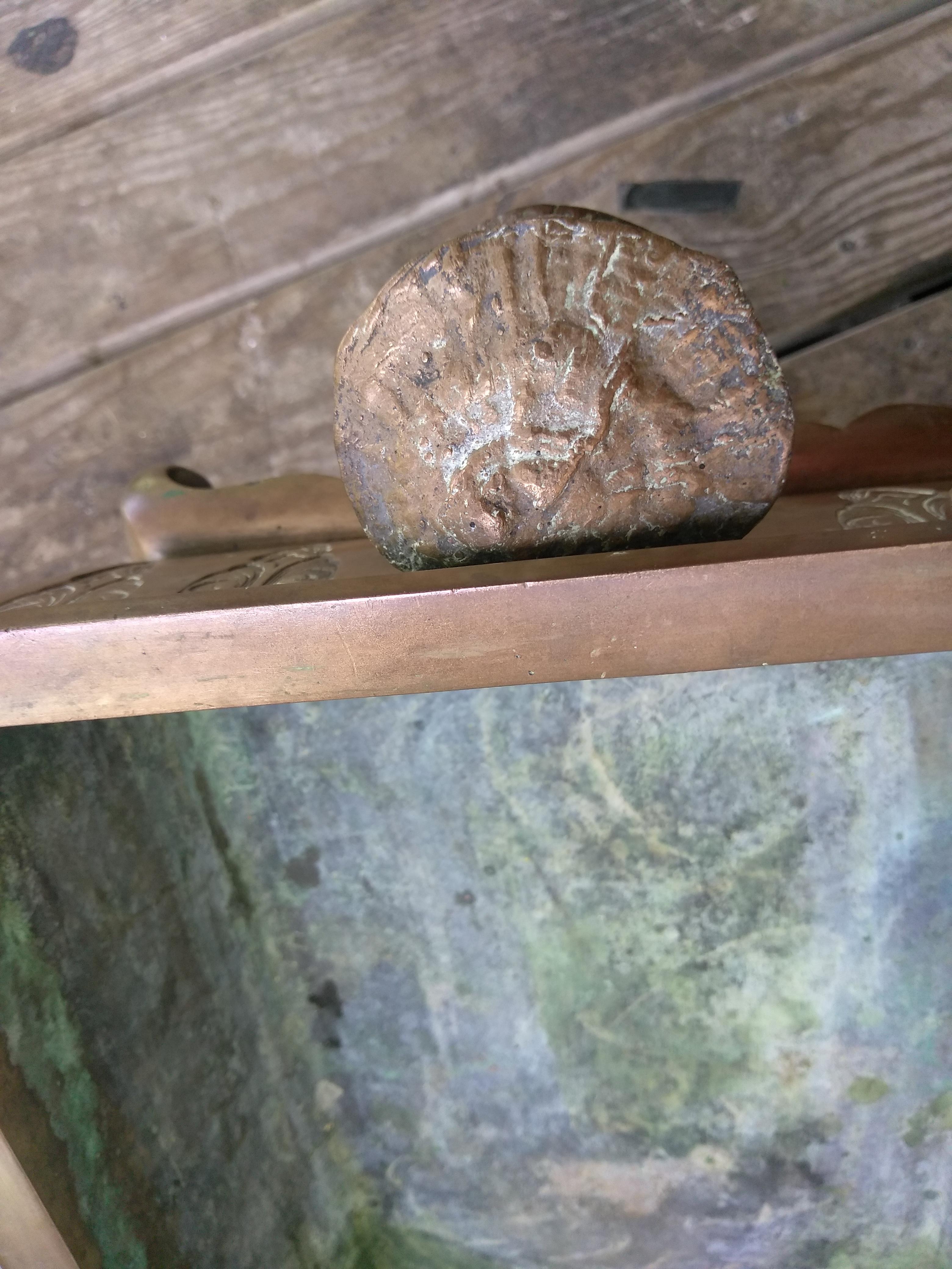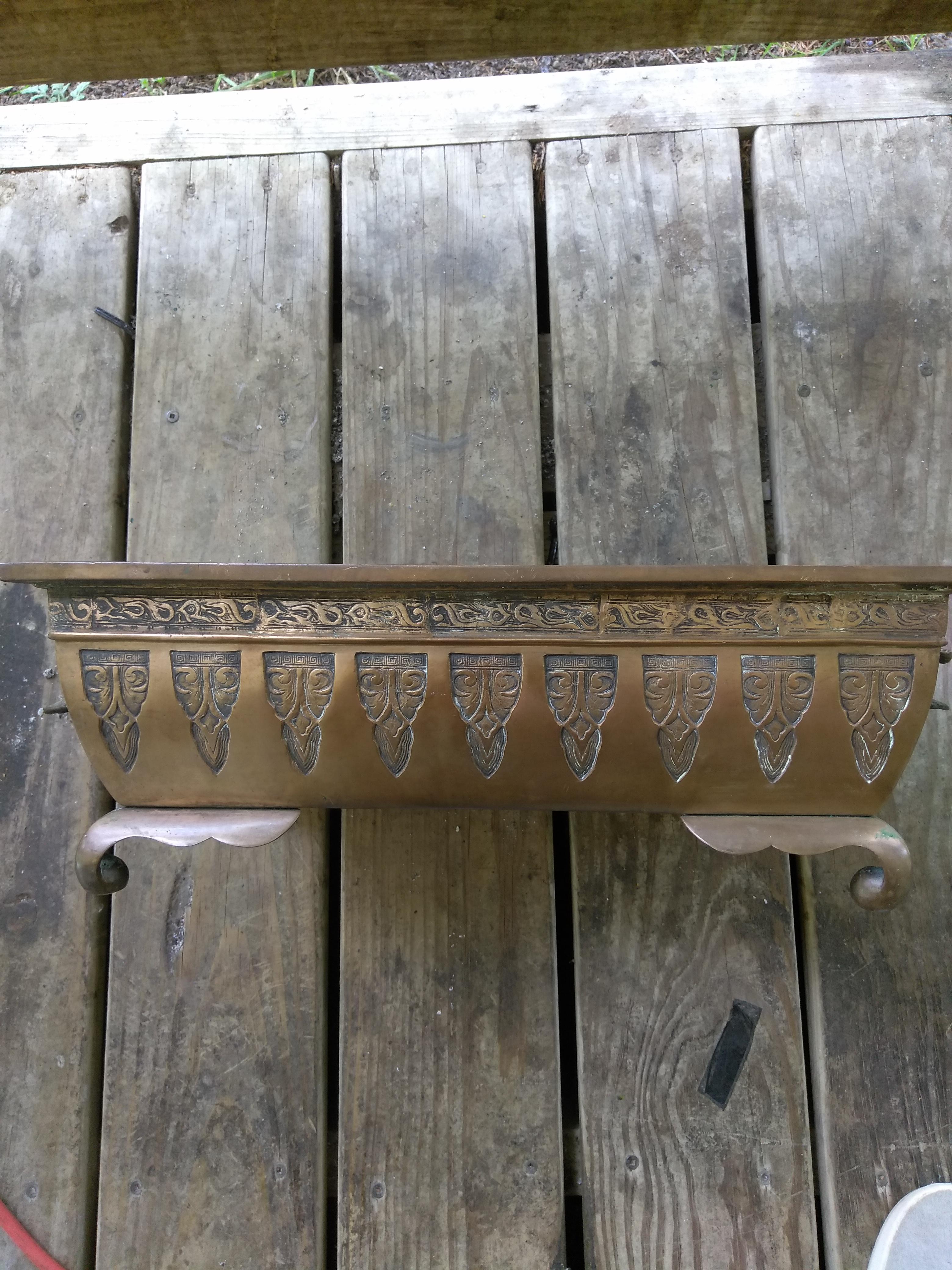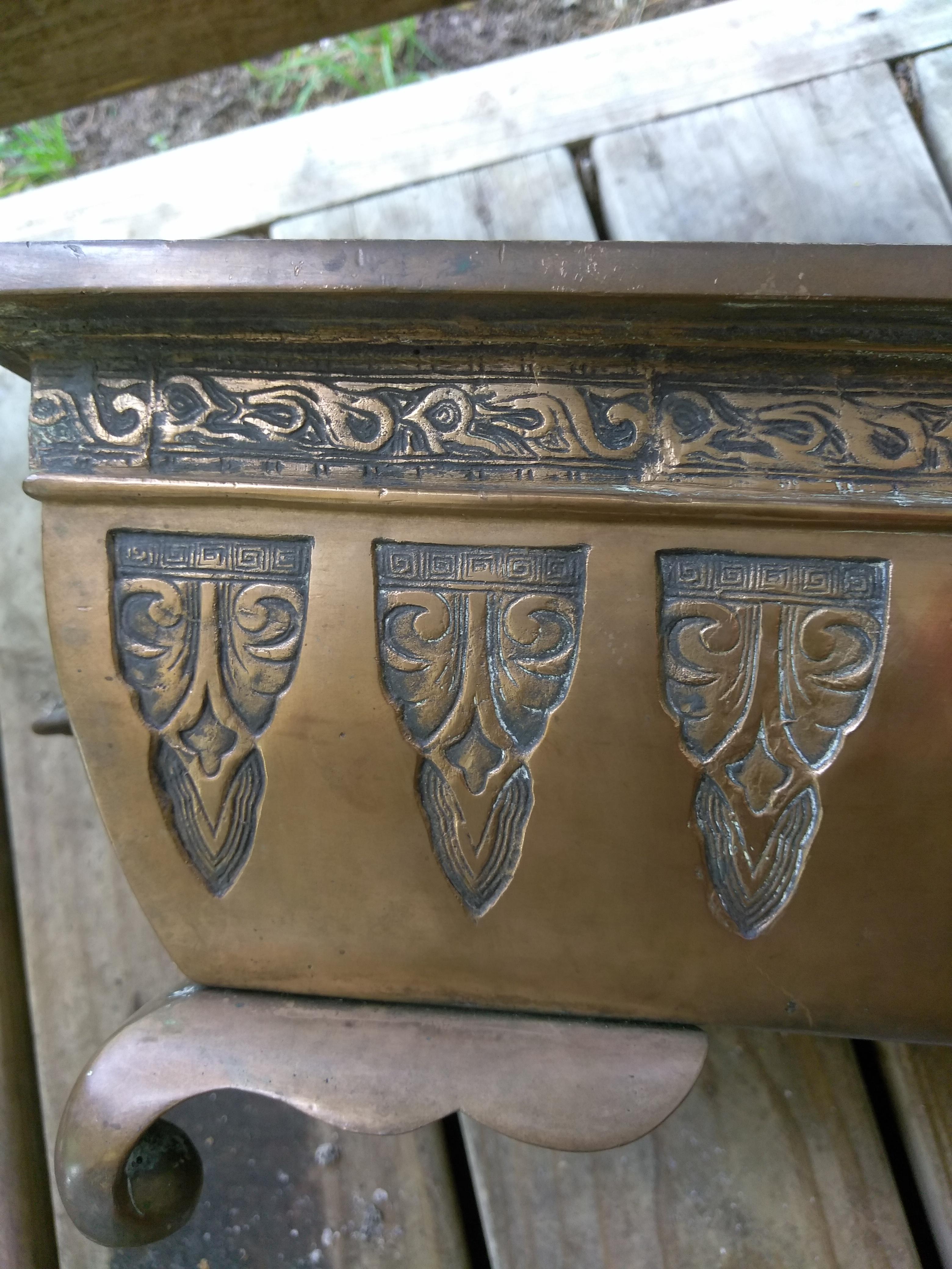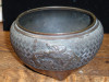 Sticker on bottom of bowl says ( sahari bronze suiban flower bowl with tao tieu panels and mushroom handles Tokugawa era 1868