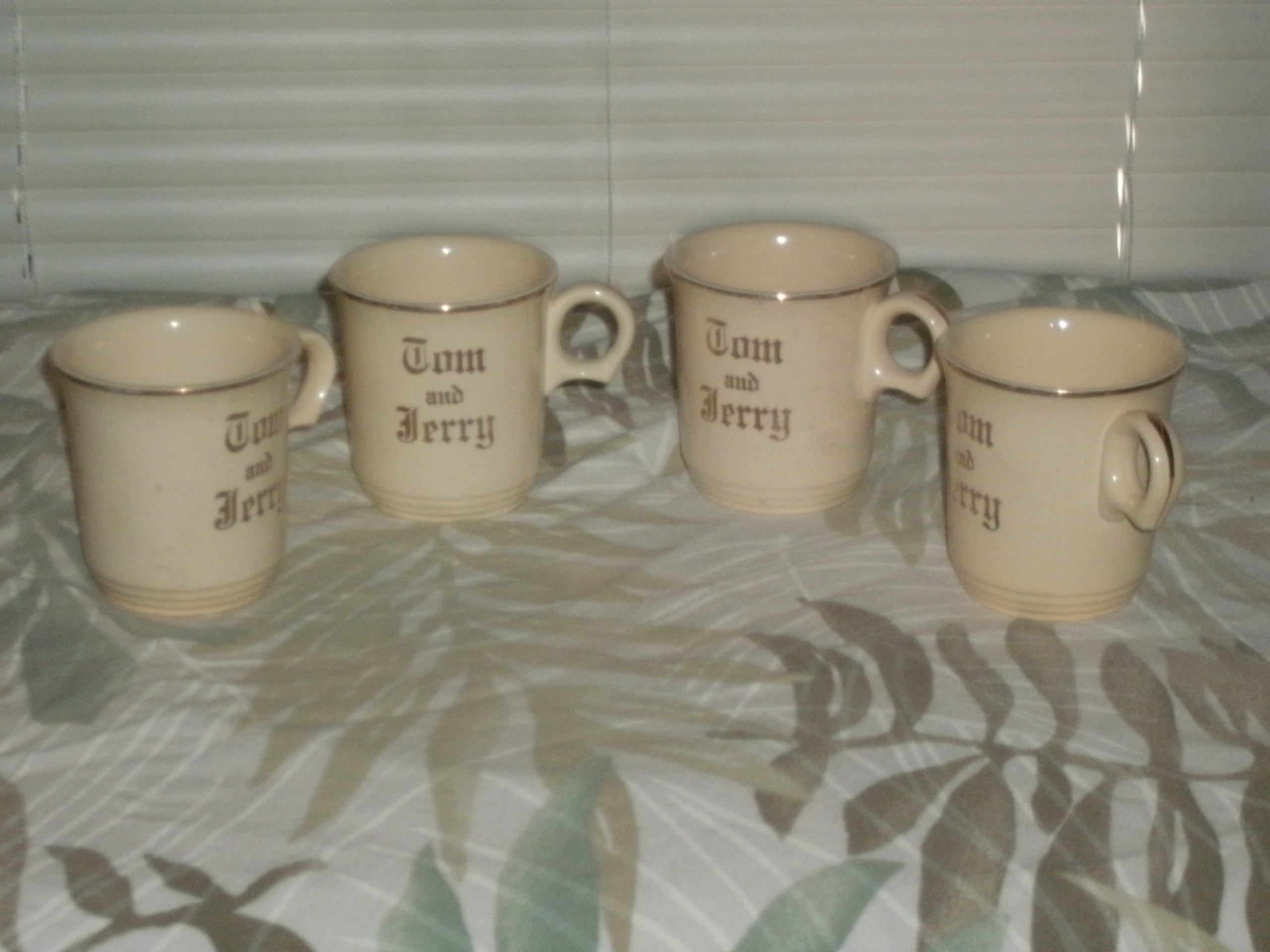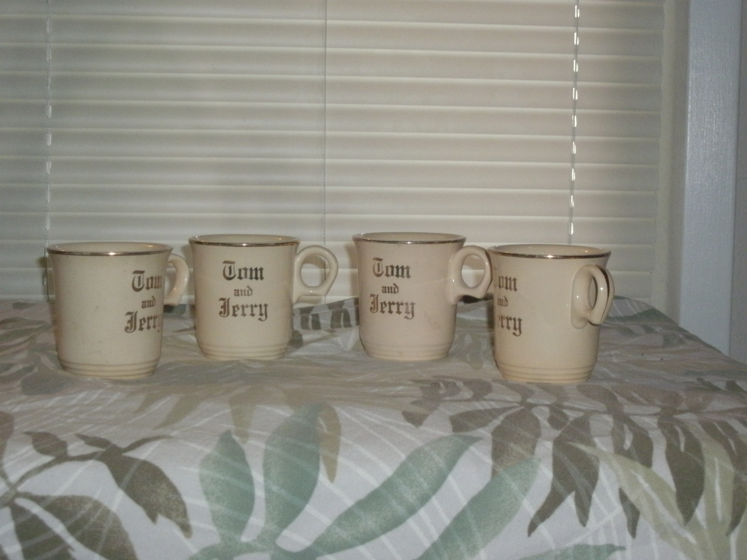 these mugs I got frommy mom, they are old, there is a set of four coffee mugs with Tom and Jerry gold lettering