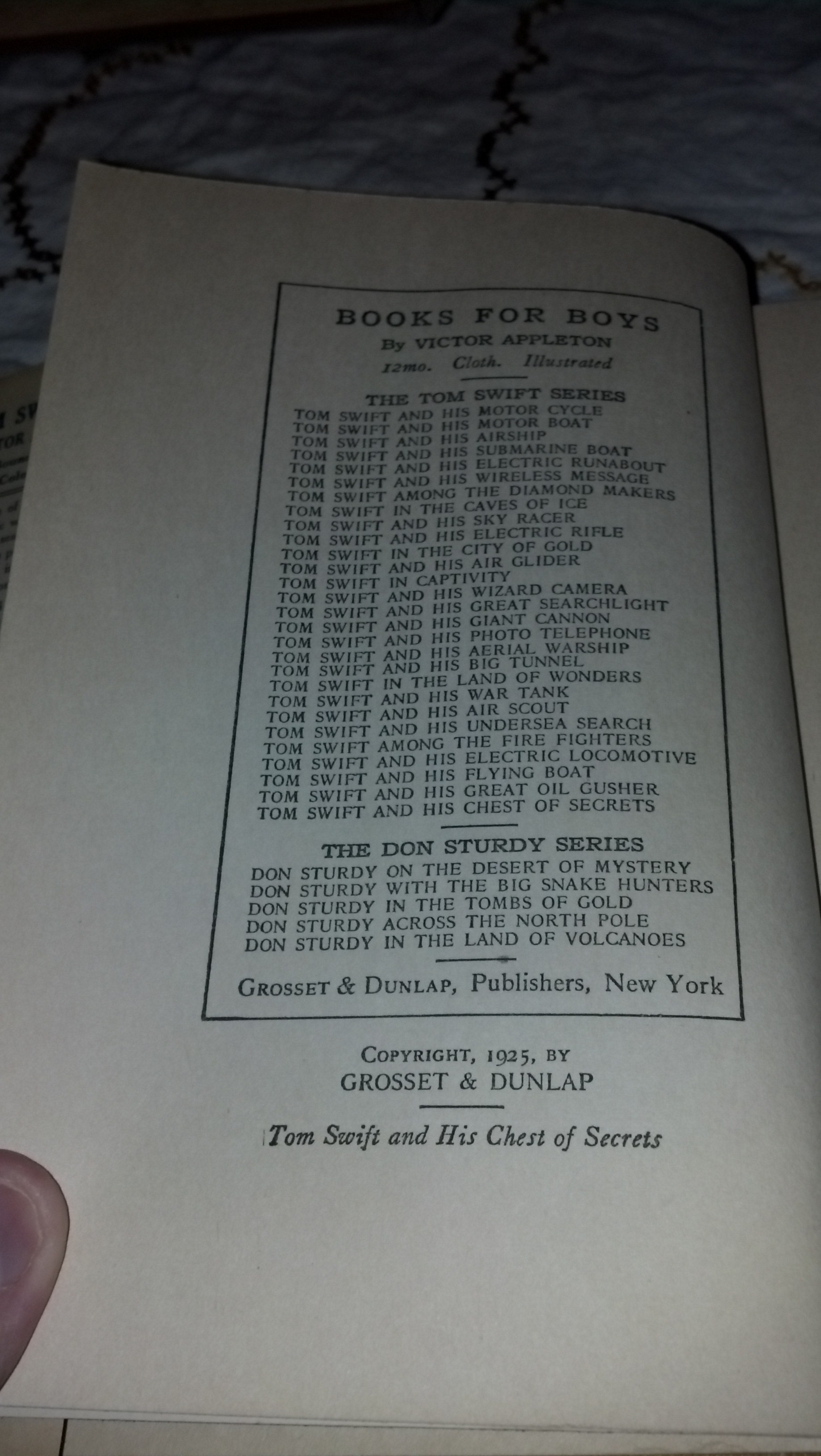 Re: Tom Swift and His Chest of Secrets, Victor Appleton 1925