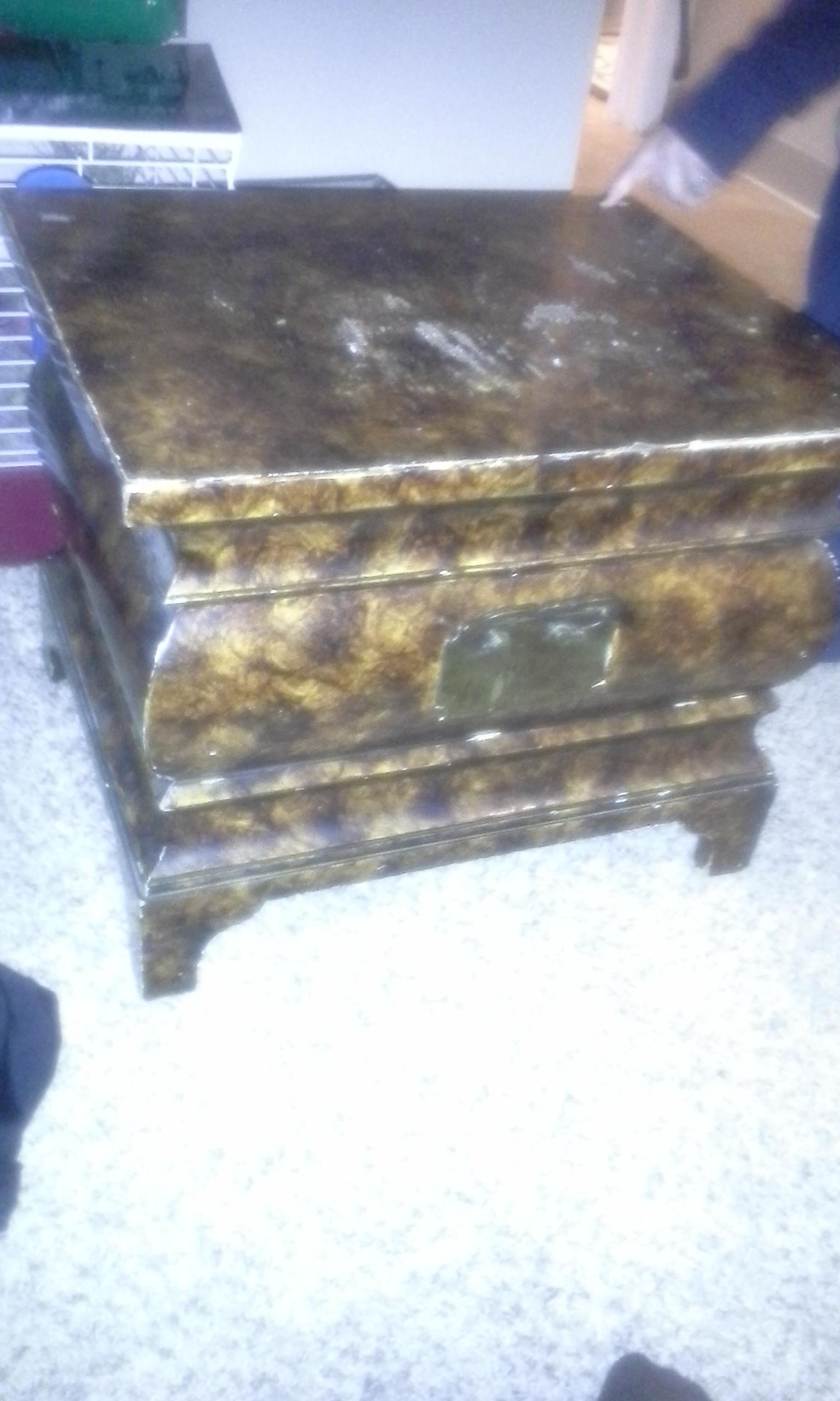 Tomlinson wood table with the polished marble look. Pawn shop offered 250$ but I feel like its worth more. Anyone know anything about this piece of furniture.