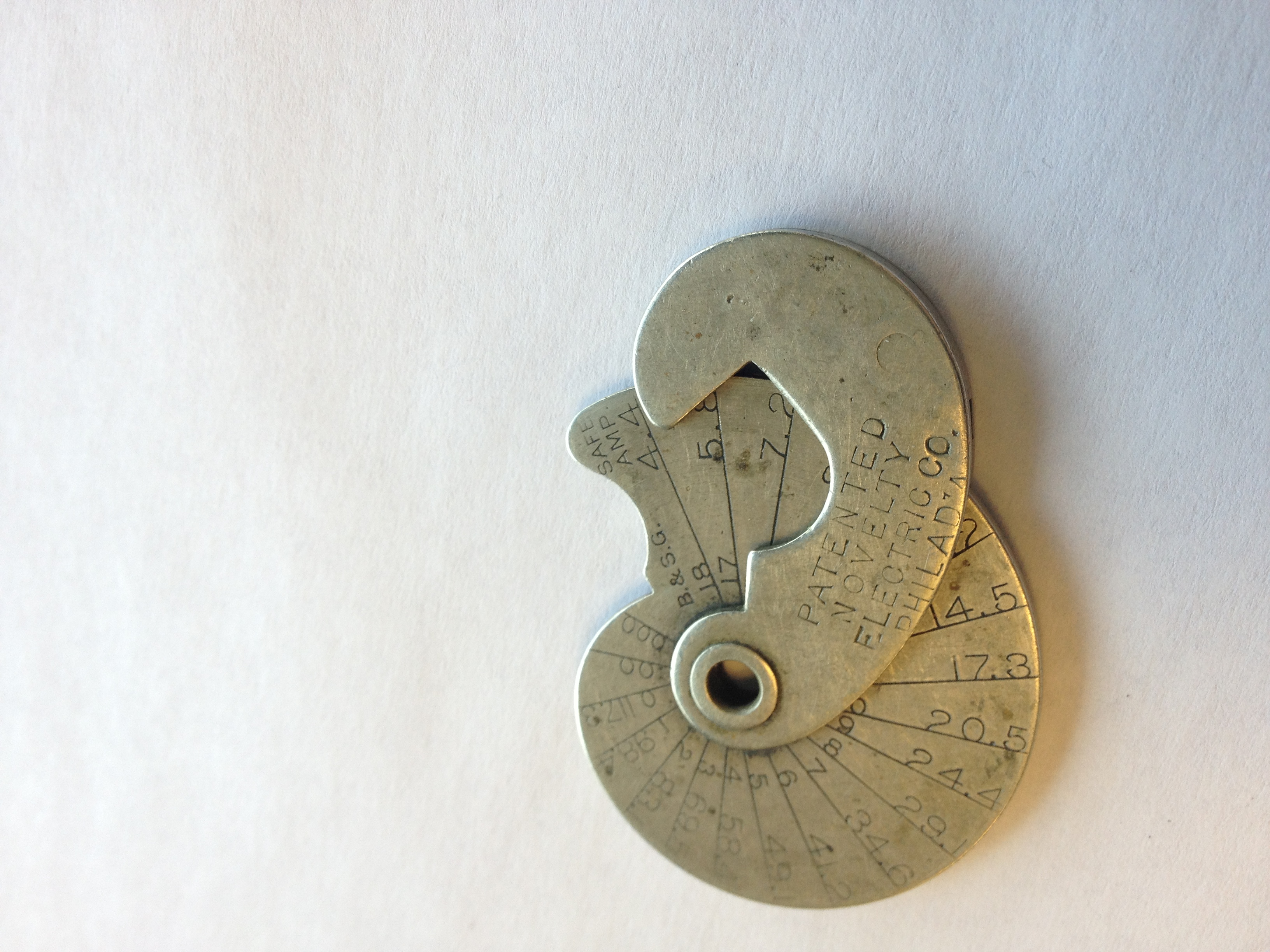 It has approx. decimals on one side and B&s.G and Safe AMP. numbers on the other side.