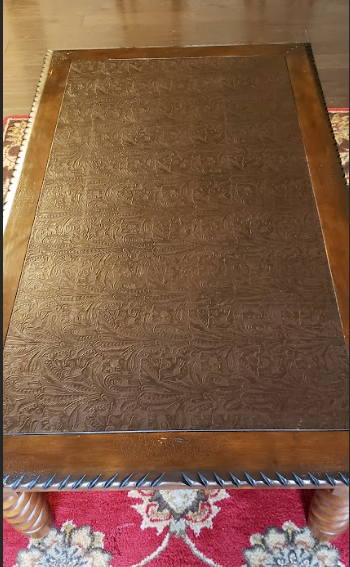 AI Appraisal: Tooled leather-top coffee table made by DeCoro,...