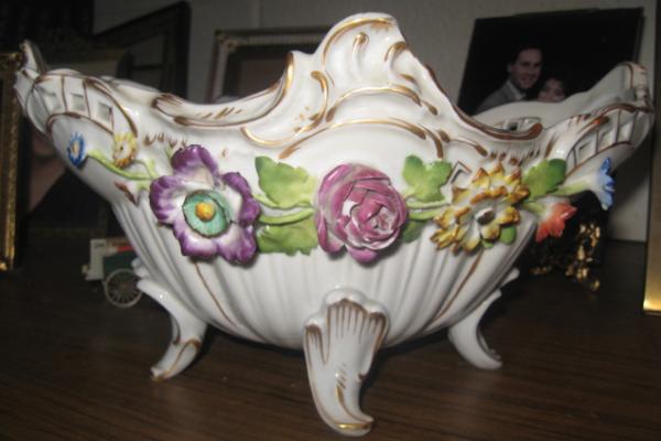 matching torcheres, 8.25", bowl is 10" long, 5.5" high, and 7" wide