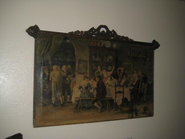 Don't have any other information other then what was stated before. Was told by the thrift store it was a art transfer. Can't find any information on when transfer art was first started in the library or internet. Its looks pretty old the frame looks to be hand carved. Any information would be helpful. Thankyou andd Merry Christmas