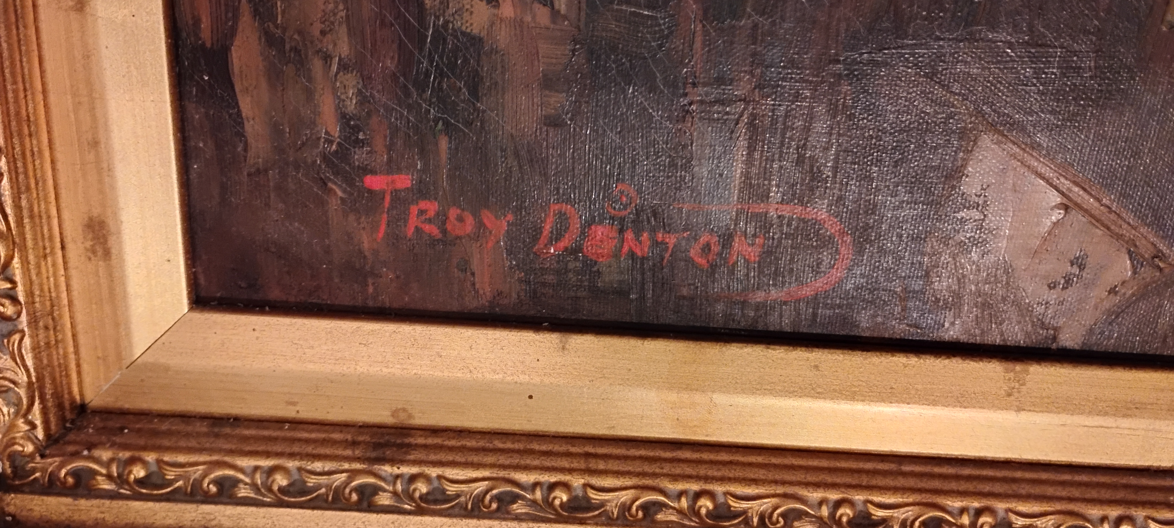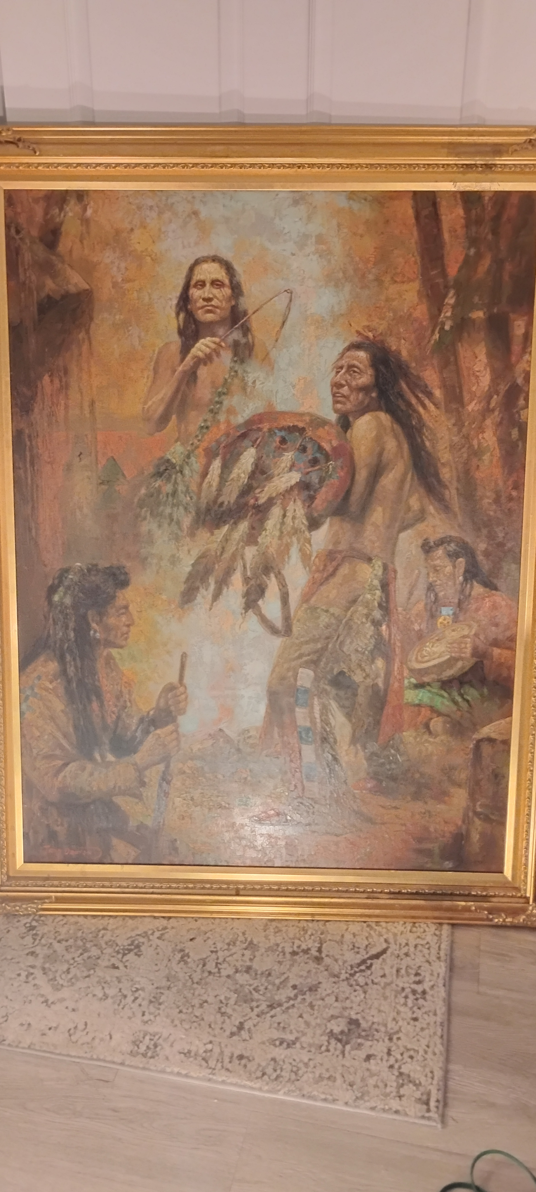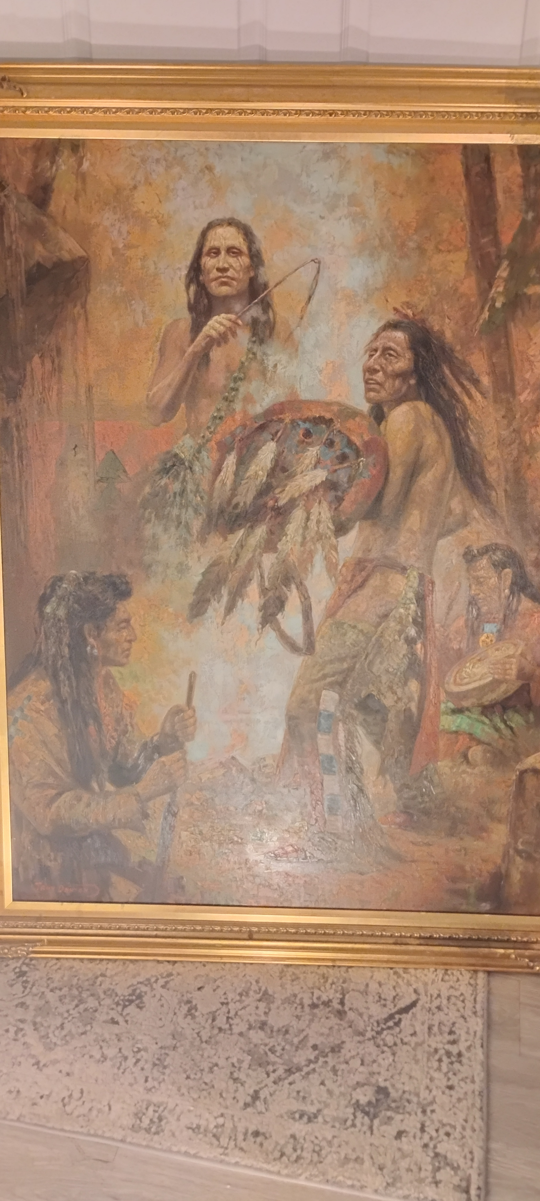 Description Signed Troy Denton "Transferring the Medicine Shield" oil painting on canvas