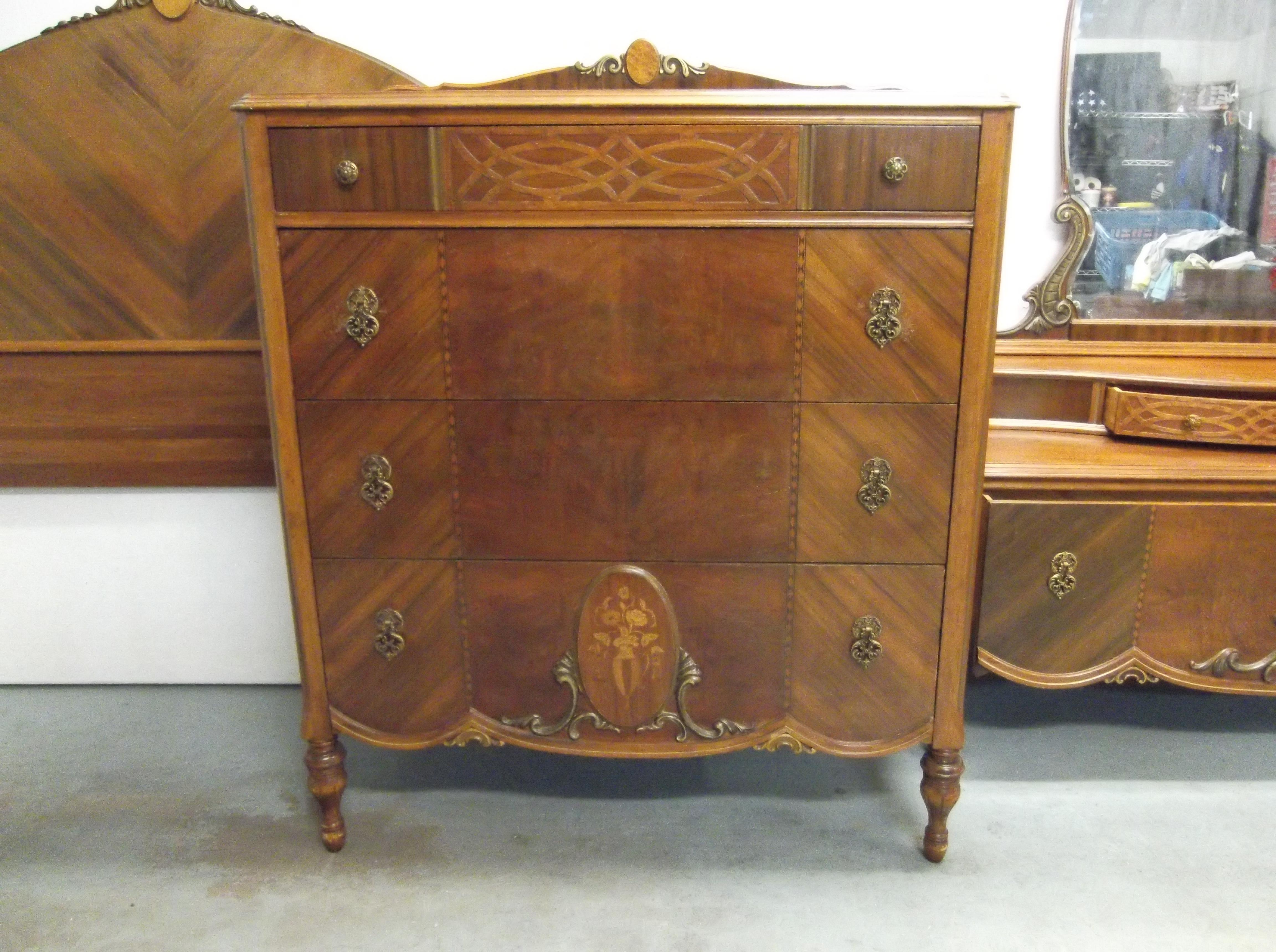 Headboard, Chest and Gresser/Mirror