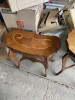 I have 6 triangle tables that can be used alone, or put together to make a hexagon. Each table has three legs. The top of each table has an ornate design featuring a circle. The top of each leg has a small filigree design as well. I can't find any information about anything resembling these tables anywhere online. Can someone tell me what they are, and how much I should sell them for?
