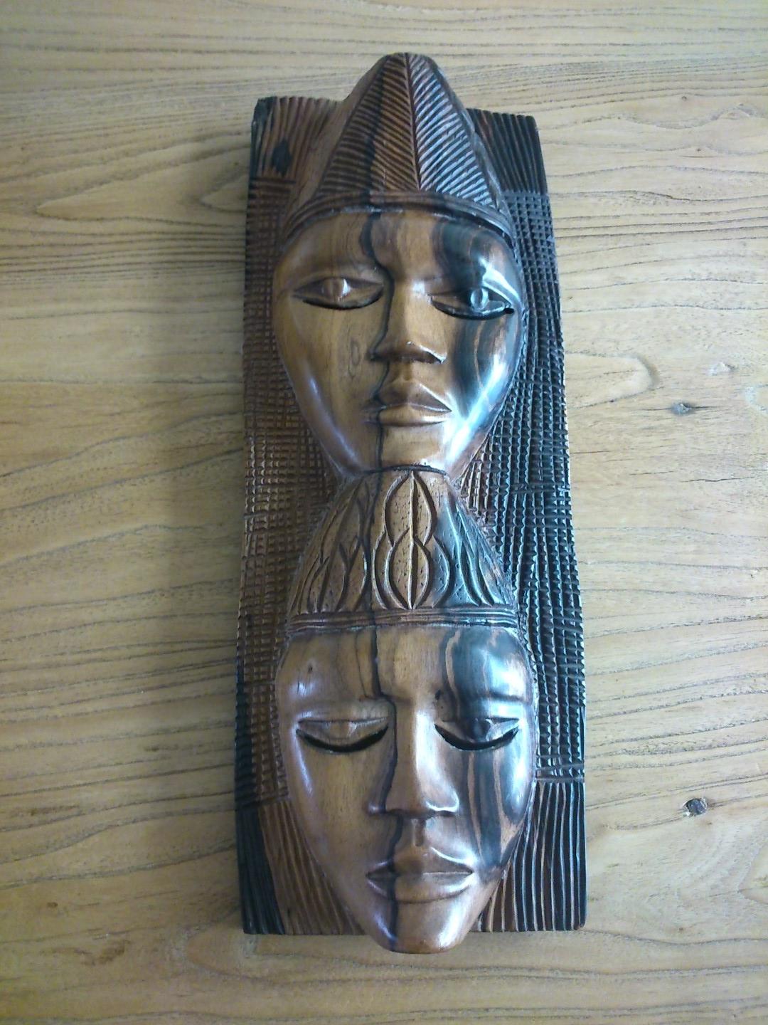 This is African tribal art or purely decorative. The measurements are 43cm / 16 cm