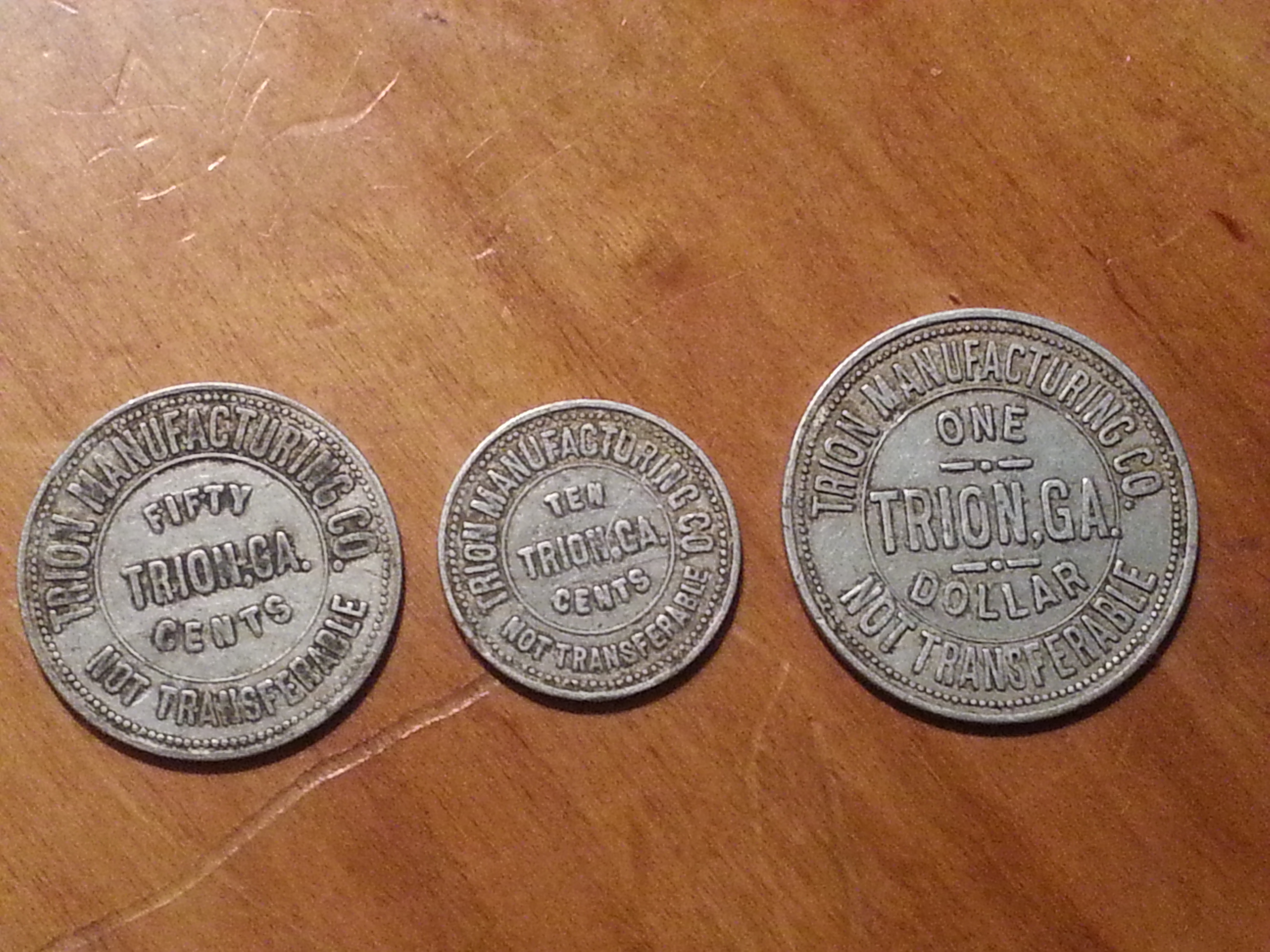 Workers were paid with these in the cotton mill regalthat was located in trion georgia beginning in 1903