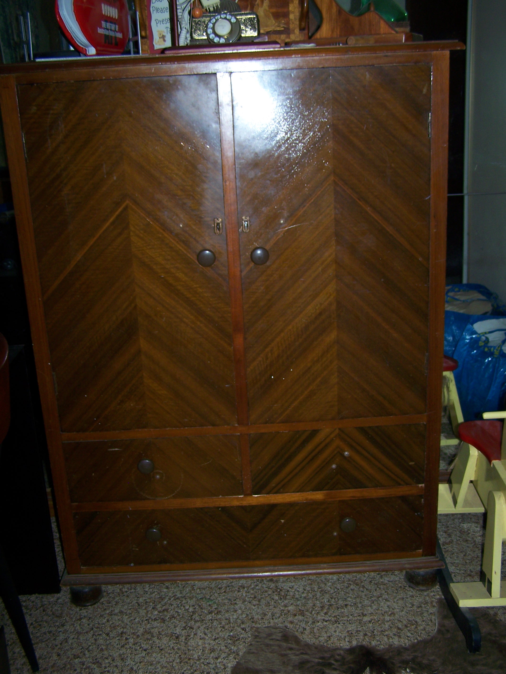 Trousseau or Linen Storage 2 drawer & 2 door cabinet. Doesnt have original knobs but otherwise as was when purchased.