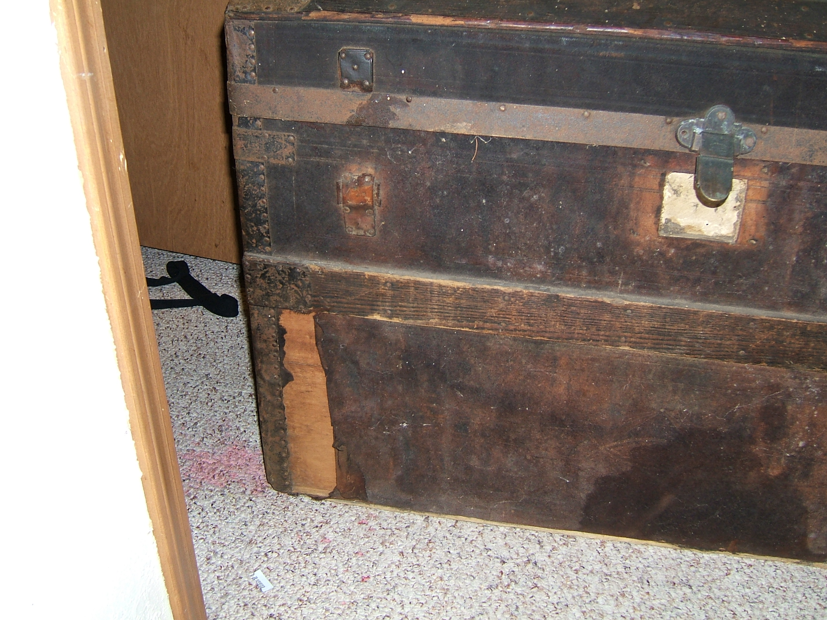 Leather straps, Hand made, Metal hinges and corners, some leather missing