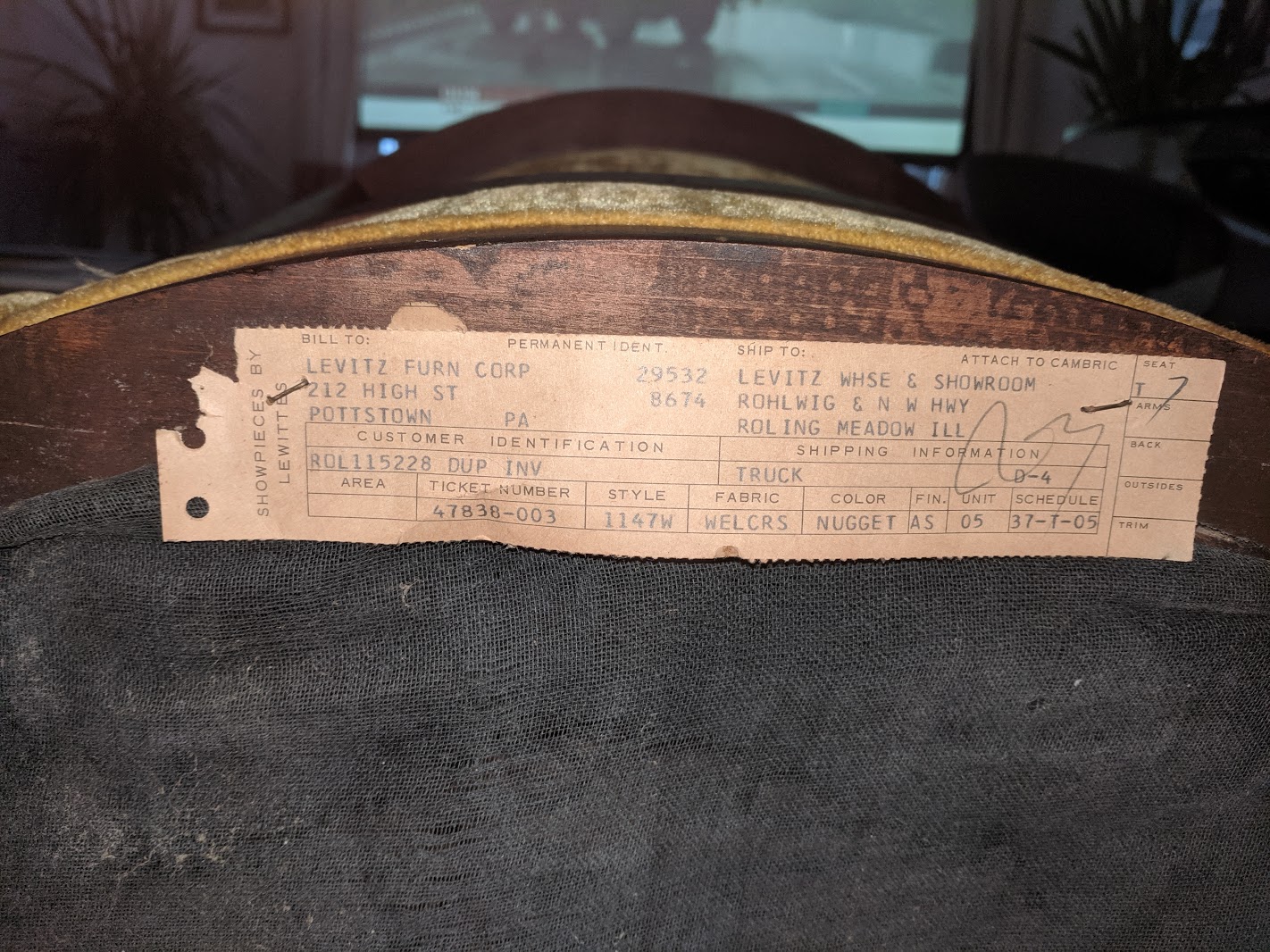 The bottom label indicates that the fabric type is "WELCRS", but I do not know what that means. Any help with appraisal and identification of the fabric material would be welcome.