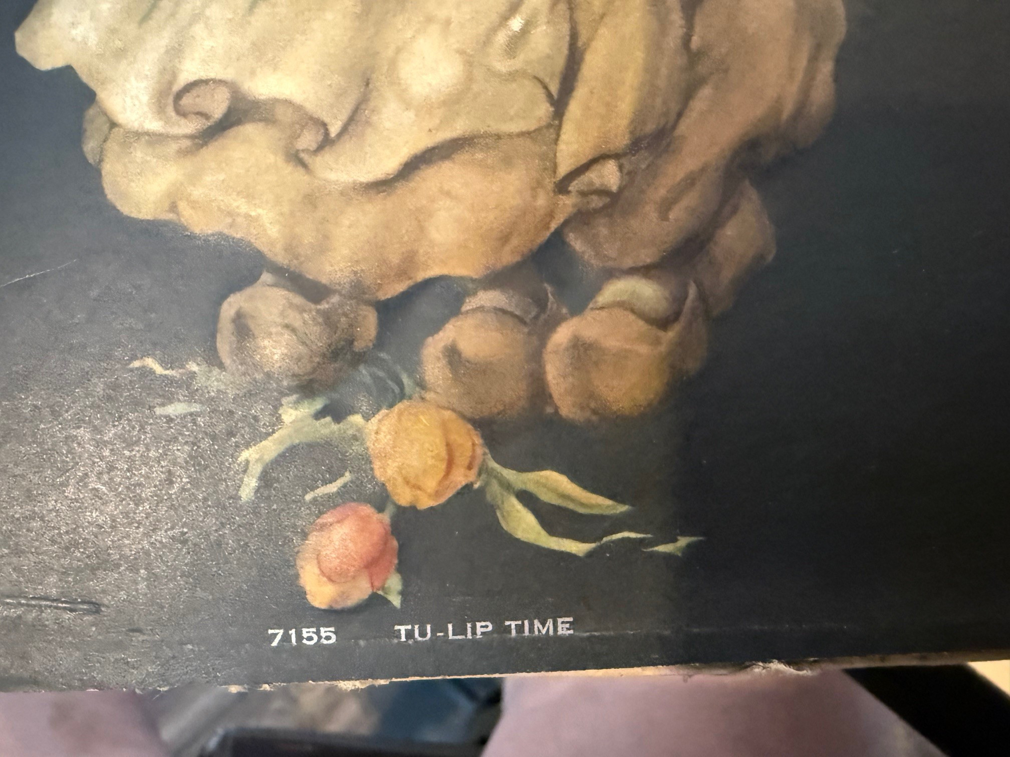 This particular style of illustration falls under what collectors call “calendar art” or “kitsch romanticism,” common in early 20th-century popular American prints. While these works were not originally considered fine art, they now enjoy a nostalgic and decorative appeal among vintage collectors.