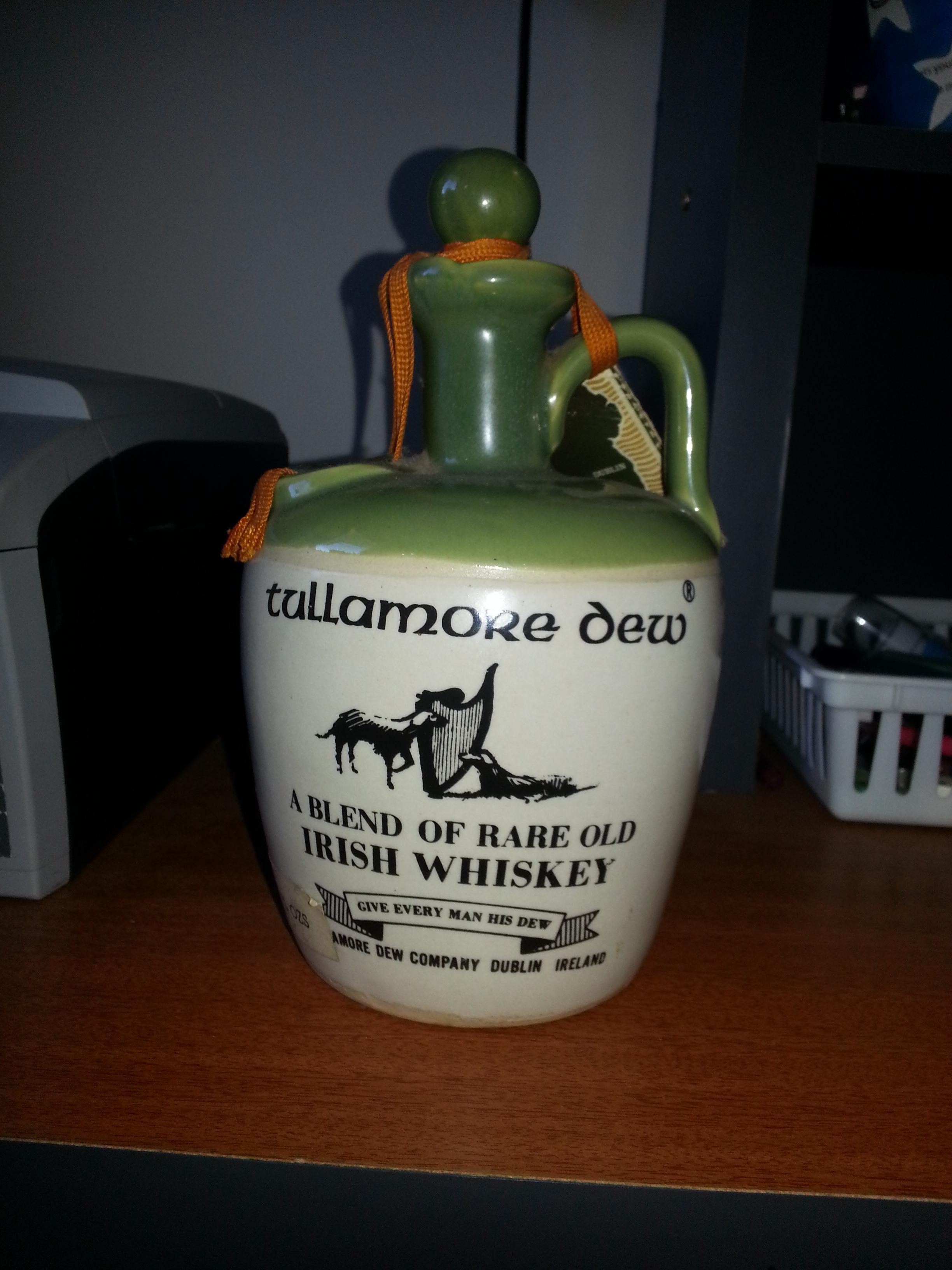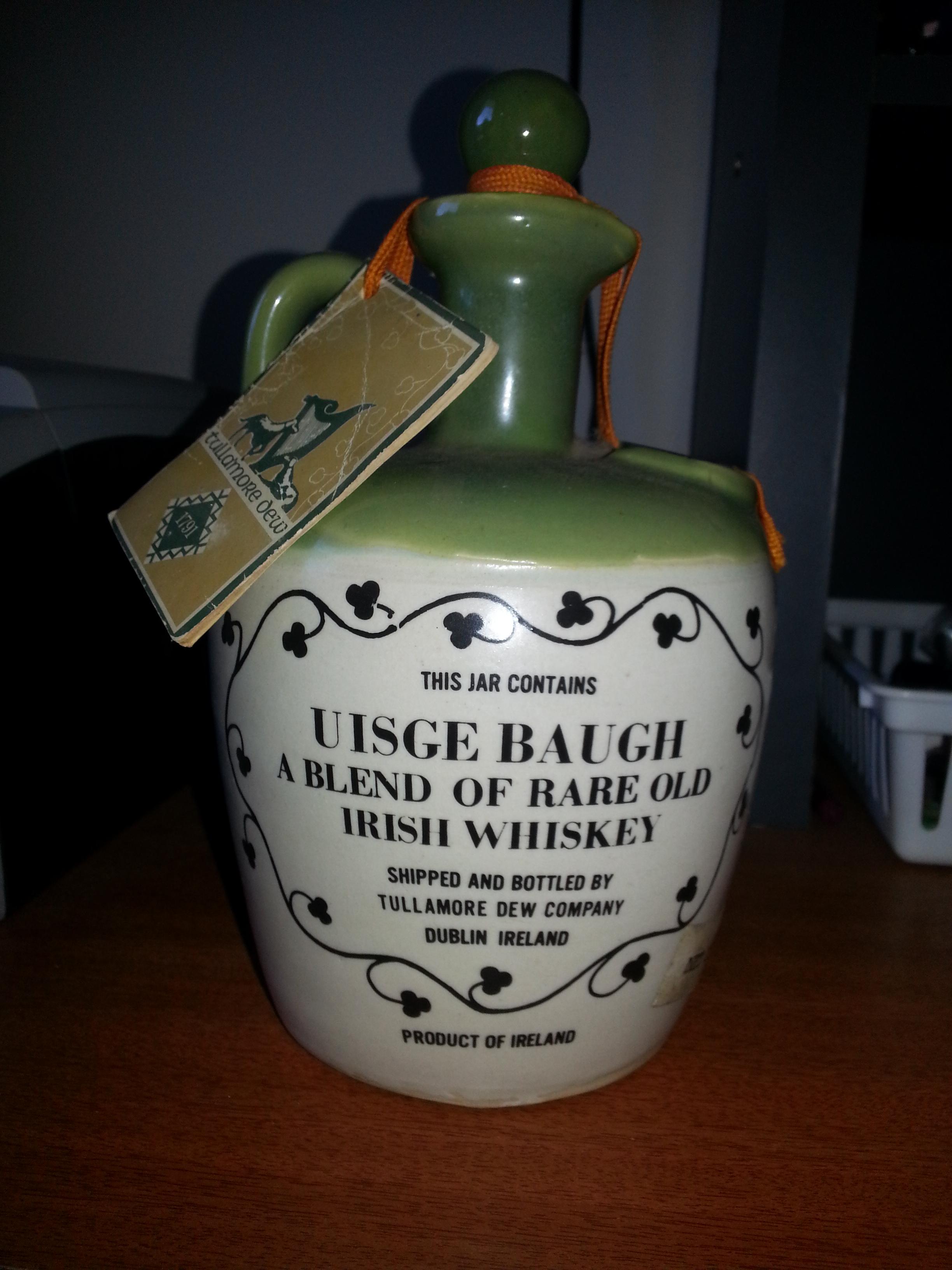 1791 unopened Tullamore dew a belnd of rare old irish whiskey. This jar contains Uisge Baugh irish whiskey. net contents 26 FL OZS. shipped and bottled by Tullamore Dew cimpany Dublin Ireland