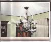 This chandelier was found dis-assembled in a box years ago before being re-assembled and wired for electricity (originally a kerosene fixture).