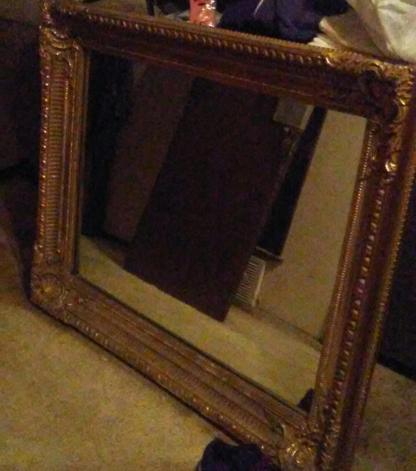 Turner 30×40 wall accessory mirror, it has a wooden frame, it is very heavy. Sticker on back I believe says 4802, I am not sure about the 8.