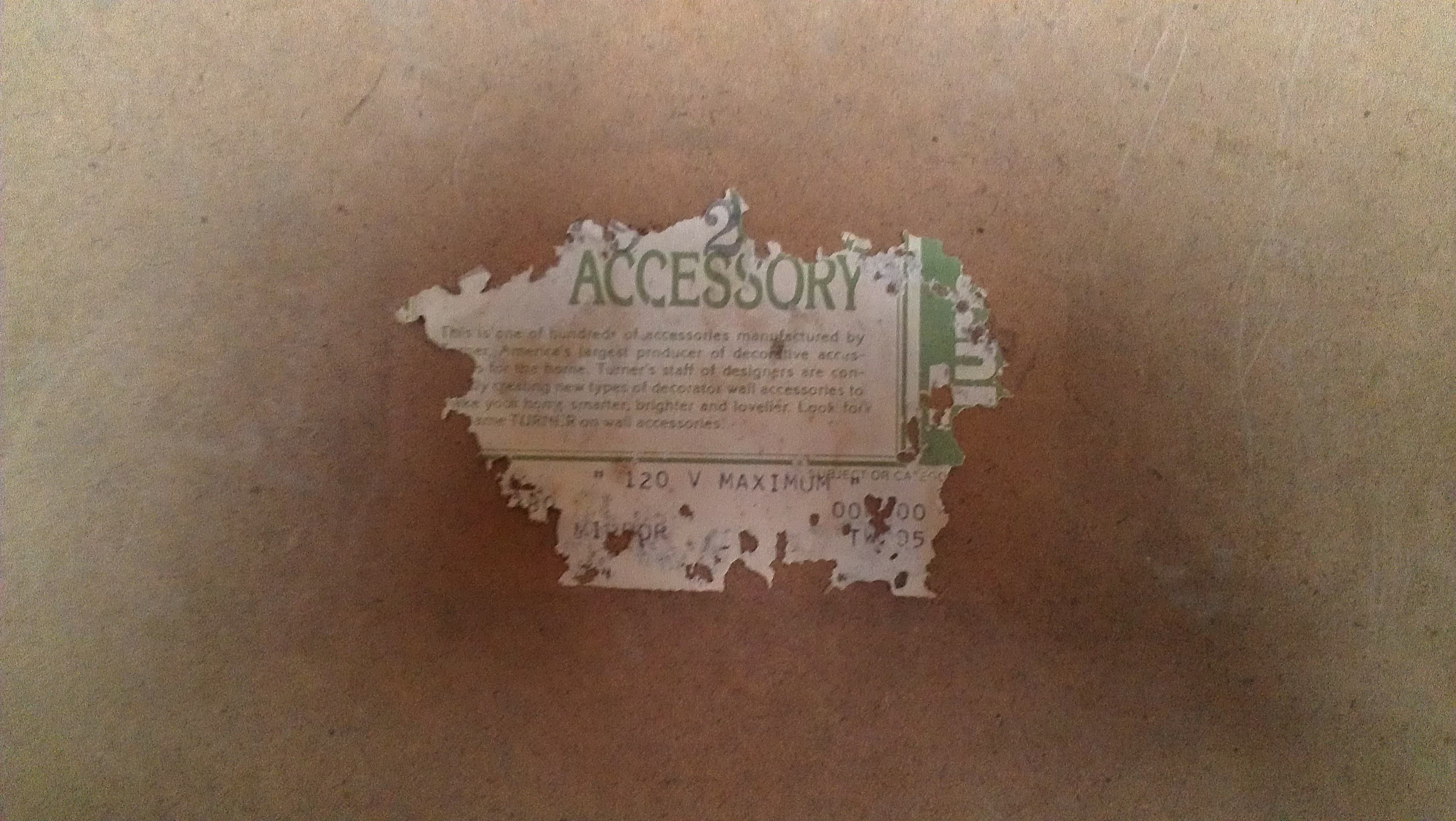 Hi there, I recently came across an interesting Turner wall accessory mirror. It measures 25" x 25" x 4" deep. The frame is a wood with what looks like black splatter or string like art going through it. The interesting thing is this mirror plugs in and has what appears to be 3 circular items that rotate around inside the mirror kind of like a hologram. They are very faint, and I am thinking maybe there is a light that has burned out. I have been searching for a few hours and come across nothing like it through google searches. I was hoping perhaps someone here could lead me in the right direction. Unfortunatly most of the sticker on the back is gone so I cannot get a model number or anything like that... hence why I am here.