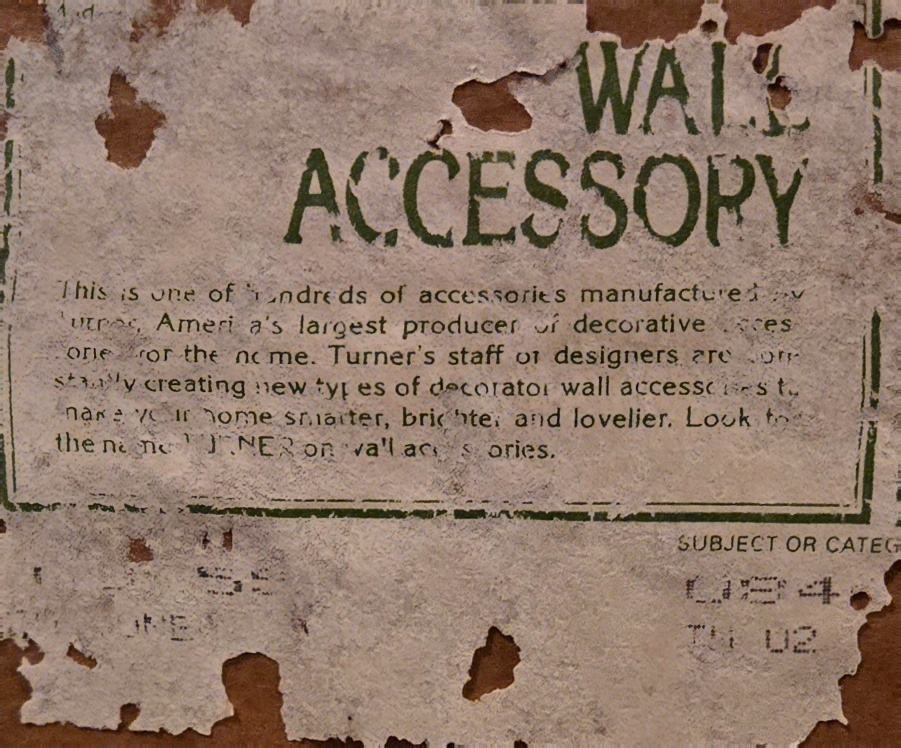 Identifiers: Marked as "Turner Decorative Wall Accessories" on the back