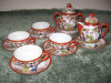 4 cups , saucers , plates, sugar, milk and teapot