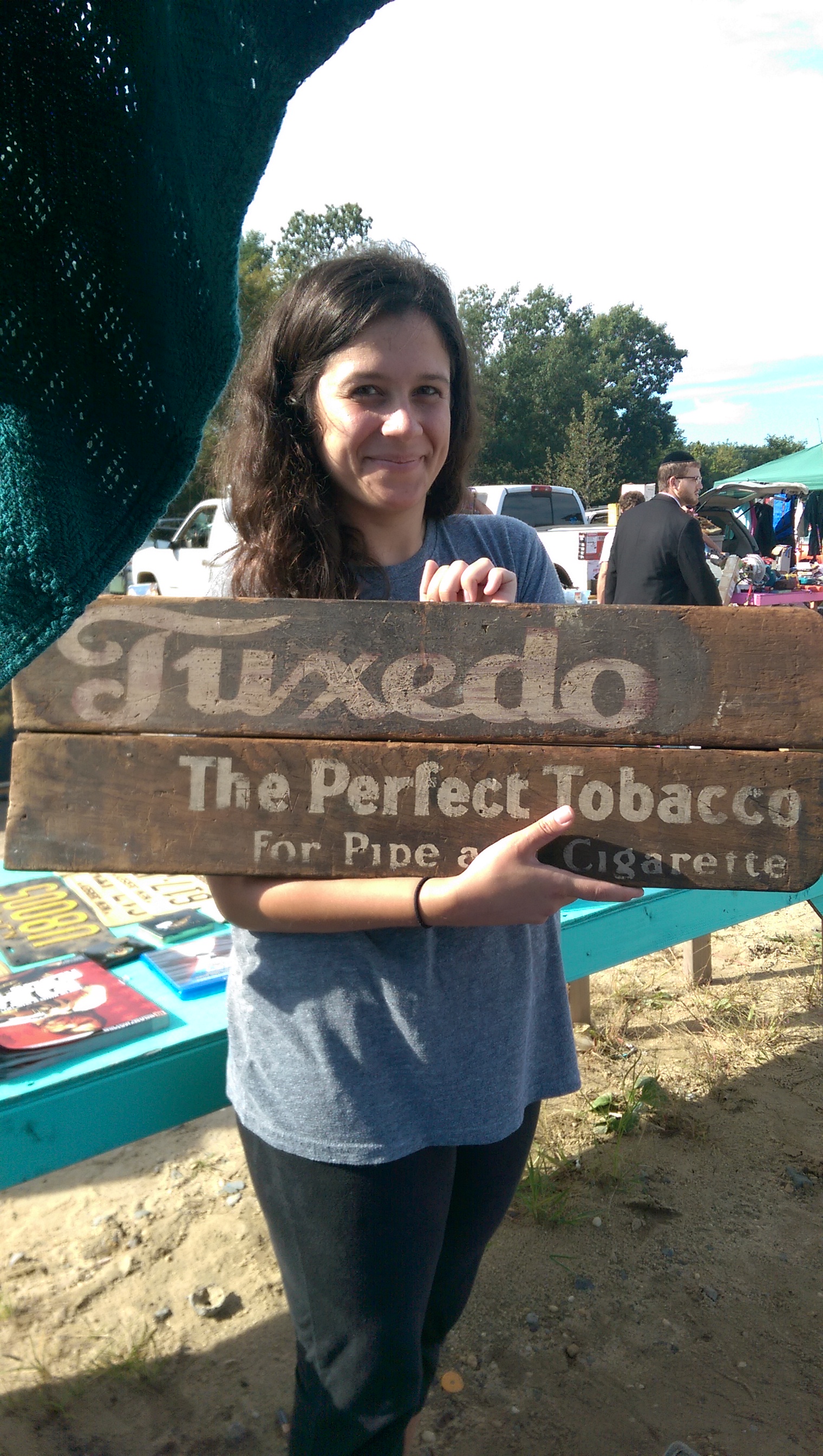 Tuxedo Tobacco sign. The sign is two heavy wooden pieces held together with a rusted metal hinge on the back. The sign reads "Tuxedo" on the top plank, while the bottom one says "The Perfect Tobacco for Pipe and Cigarette". The piece appears to be genuinly very old and not recondtioned or anything to fake an old apperance. Just wondering if anyone out there can give me an idea about the value, I havent been able to find anything comperable online. Thanks!