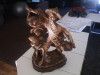 I can't tell for certain, but I think these are Ivory or ivory-resin, and are about 20" tall each. It is not soapstone as I thought, not wood, not plastic. And being in a completely smoke-free environment since my family has had them, they have slowly been aging and turning a hue of yellow and darker yellowing in some areas. They've never been cleaned other than dusted.