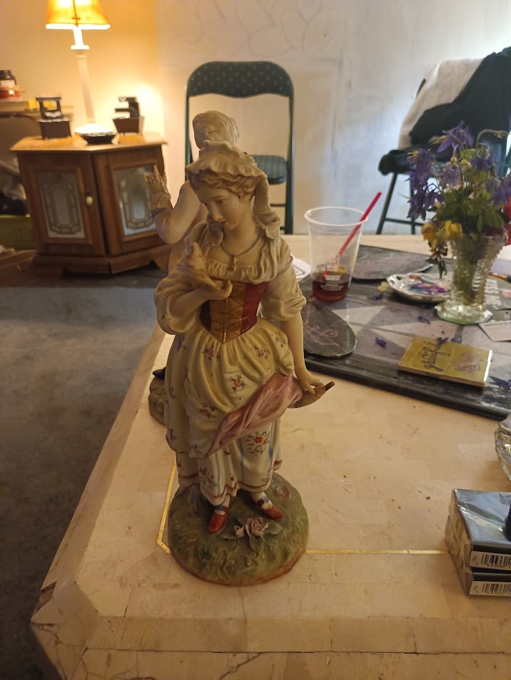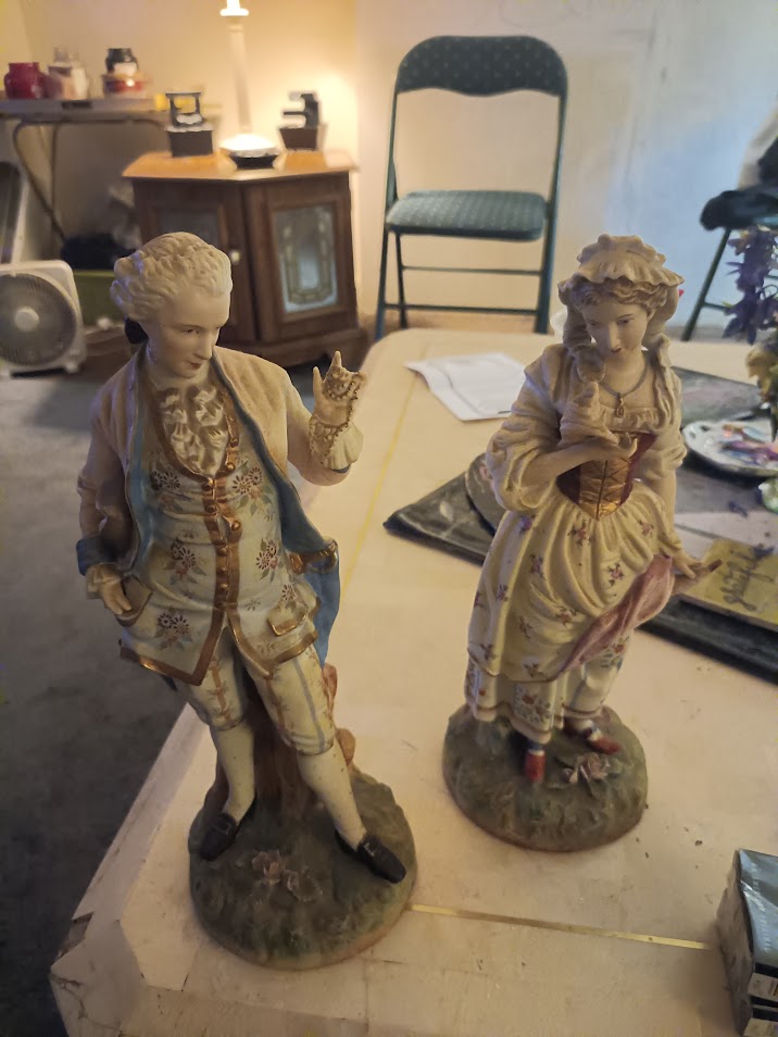 Two Antique Bisque Porcelain Figurines