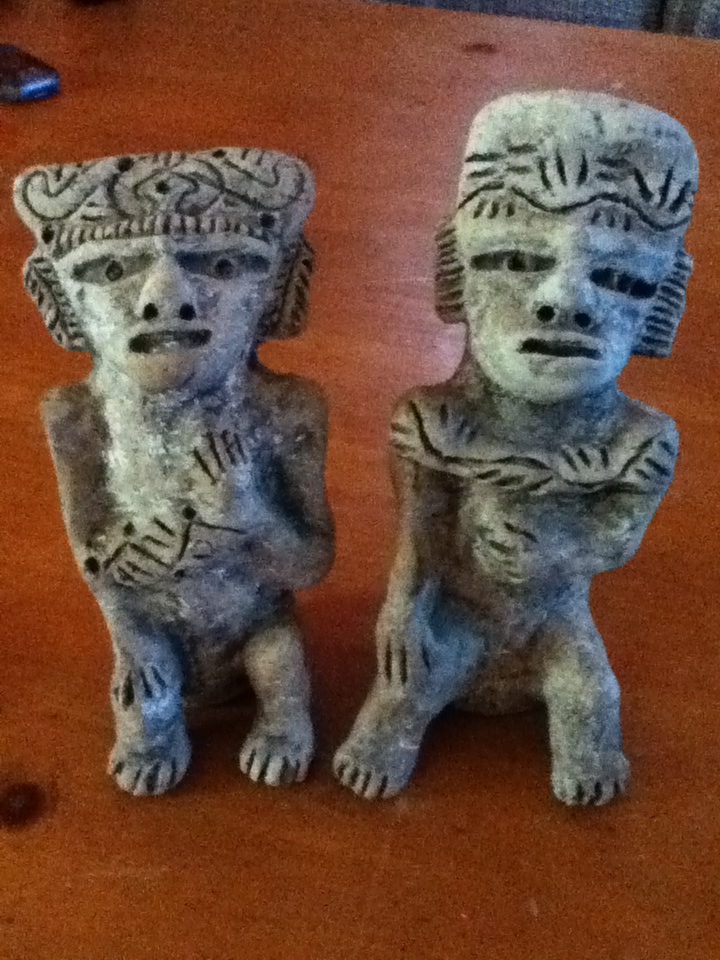 We just recently inherited two stone statues that seem to be very old. My father found them while digging a road in Mexico at the age of 17 in 1974. I'm not sure what kind they are or exactly where in Mexico he found them, but I would like to learn more about them and if they are valuable or not. We thought they might be Mayan or Aztec artifacts but we are not sure at all. Thanks.