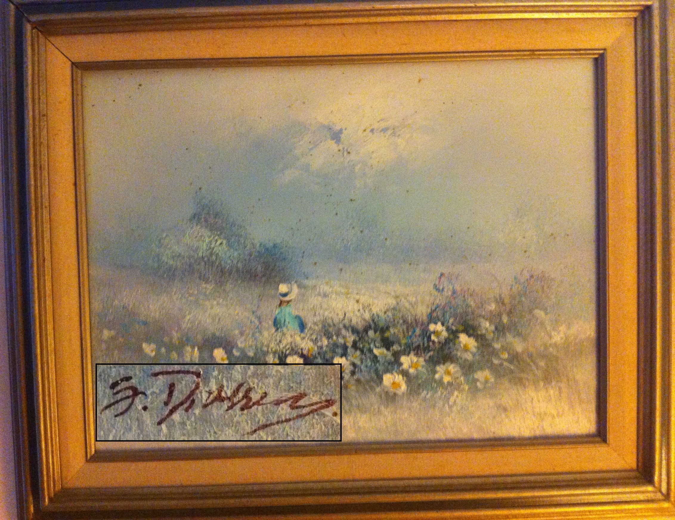 1. Floral Display with young woman in a field of flowers. Can't make out the artist name.