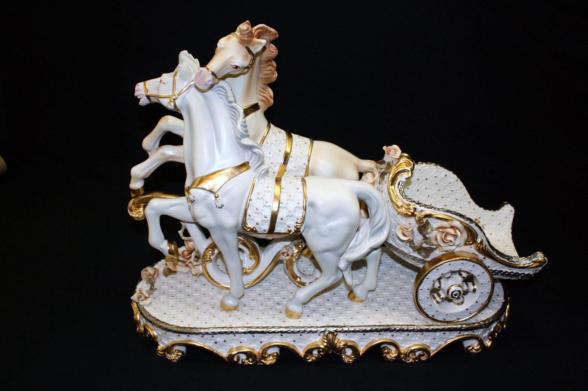 Very Large and beautiful piece. Gold and silver painted trim. Decorated with roses.