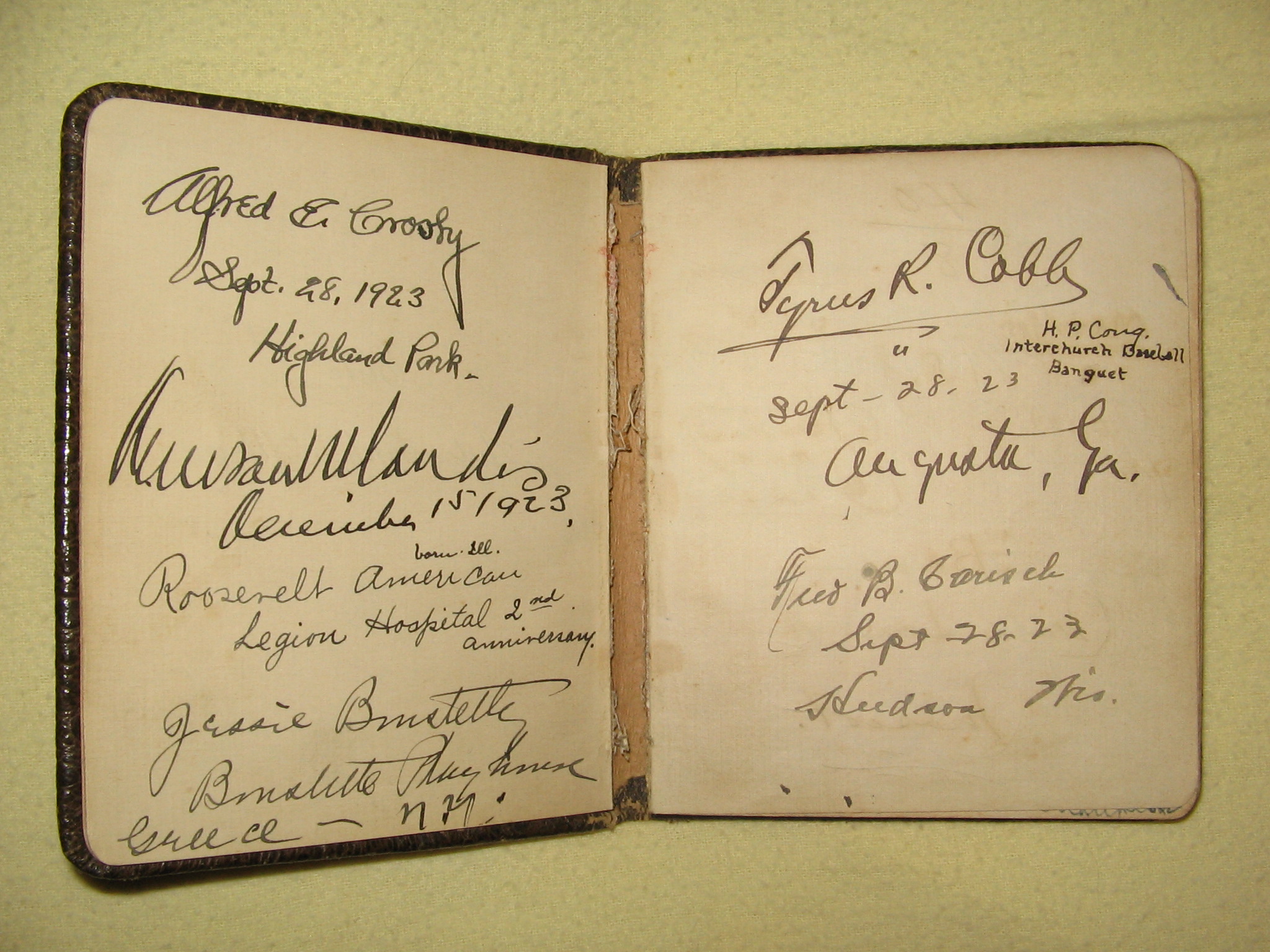 This is a signature of Tyrus R. Cobb from Sept. 28, 1923 He was in Augusta, Ga for
