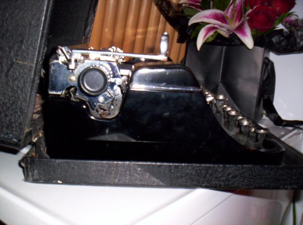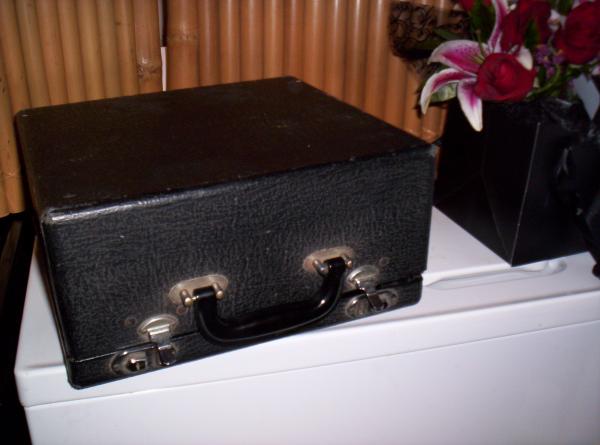 Glossy black finish, excellent condition. Appears to have been barely used. Case in very good condition. Some wear. Warranty information affixed to inside cover. Date sold: 12/20/1937