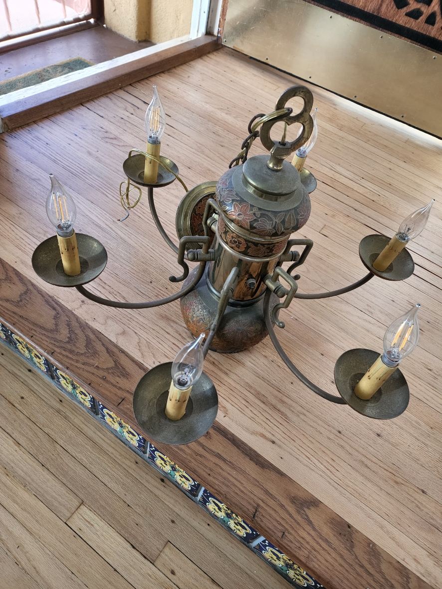 Hello, I have a chandelier that was installed in our 1930 home in southern LA. It has 6 candles and one light below in its center. The only label I can find is in the mounting area that says Underwriters Laboratories Electric Fixture, Type I.C. Isse No. D-193, 563 and E-18623. It is functional, the before it was disconnected.