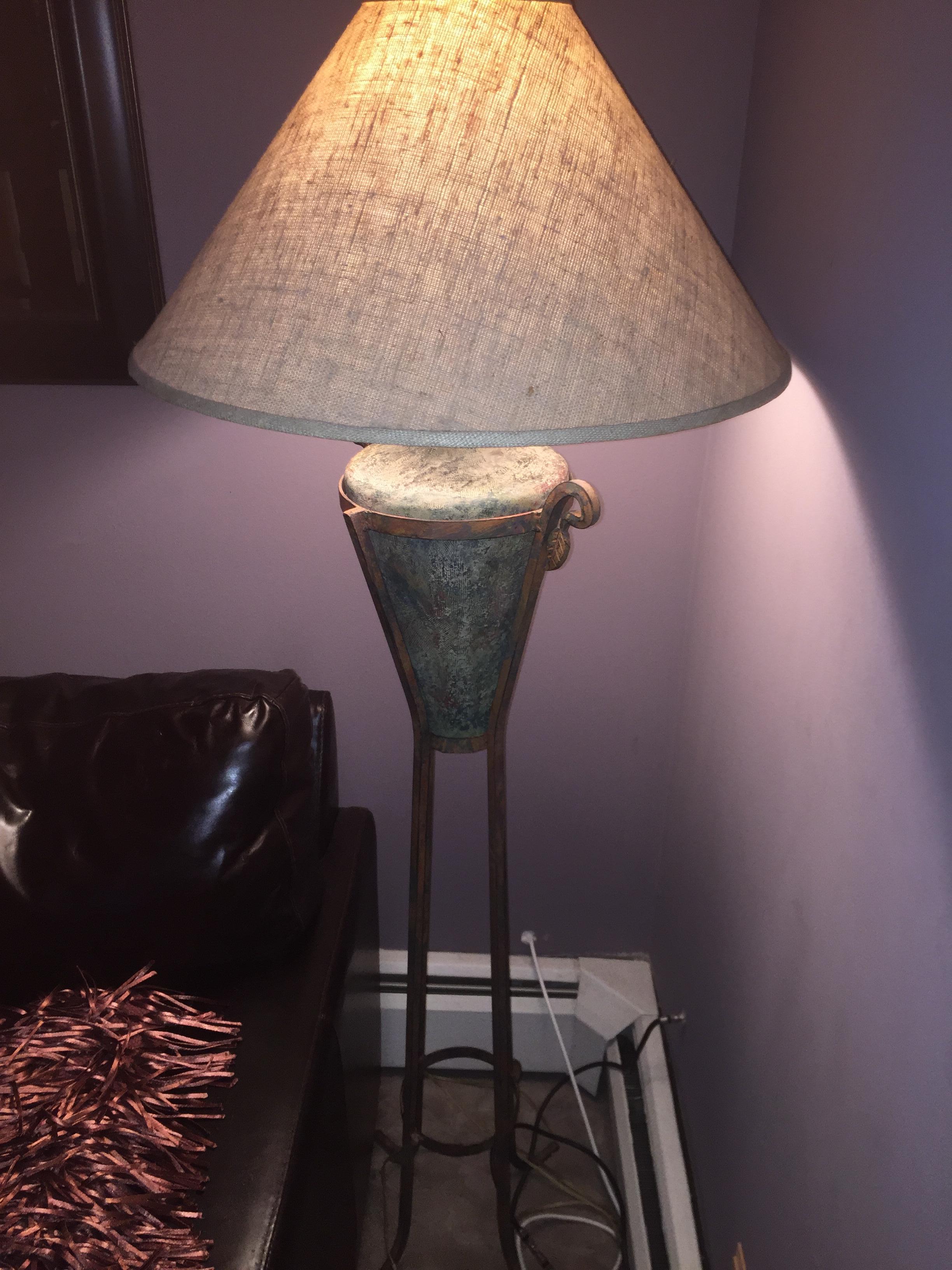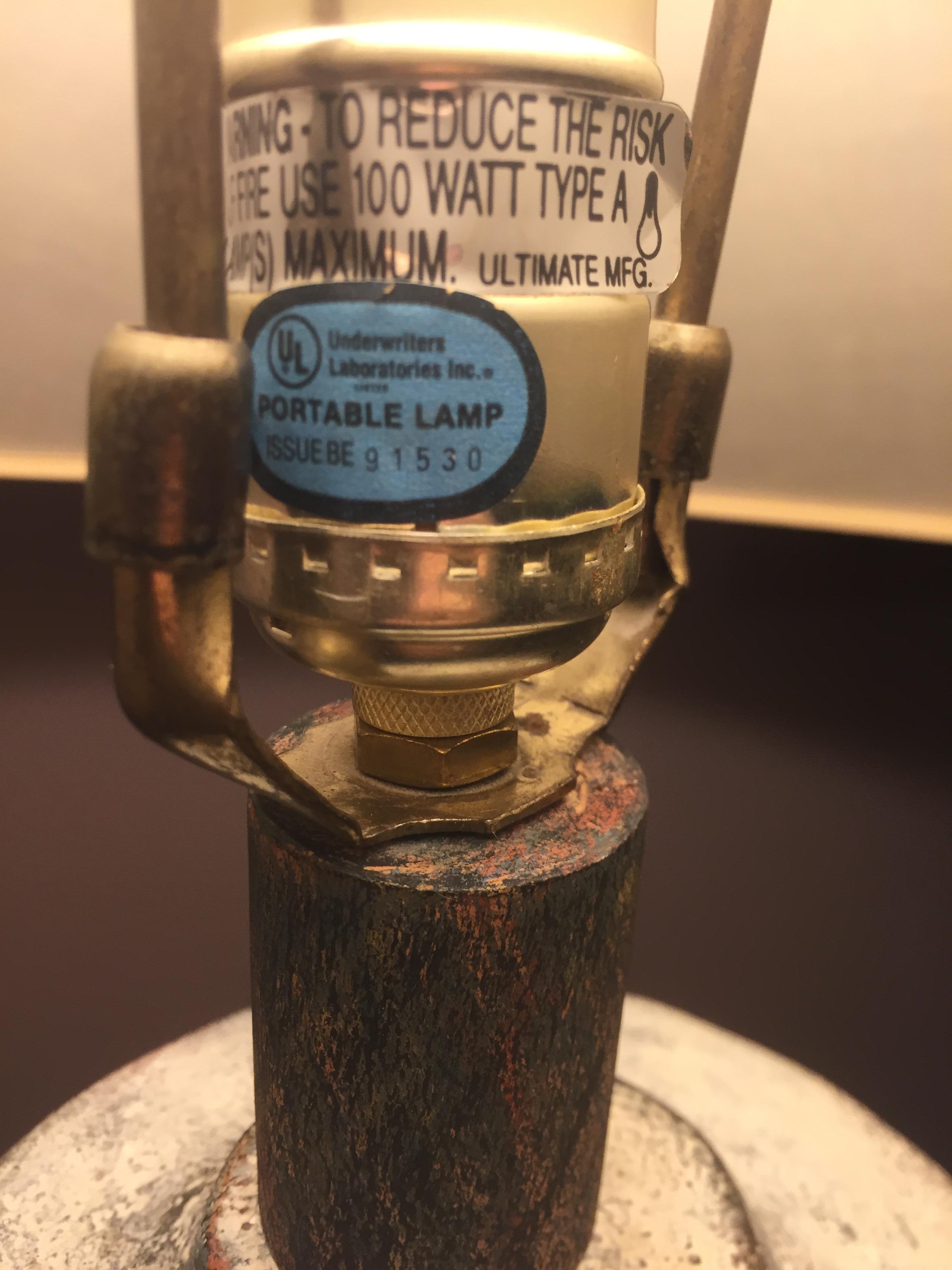 Lamps similar to this are still in production, most of them post date the 1970's. The underwriter's mark is not that of a maker , they are a world leader in product safety testing and certification. For more than 100 years, manufacturers have had their merchandise evaluated and tested for safety risks by them. We'd retail one for about $200.00 as a decorator piece.