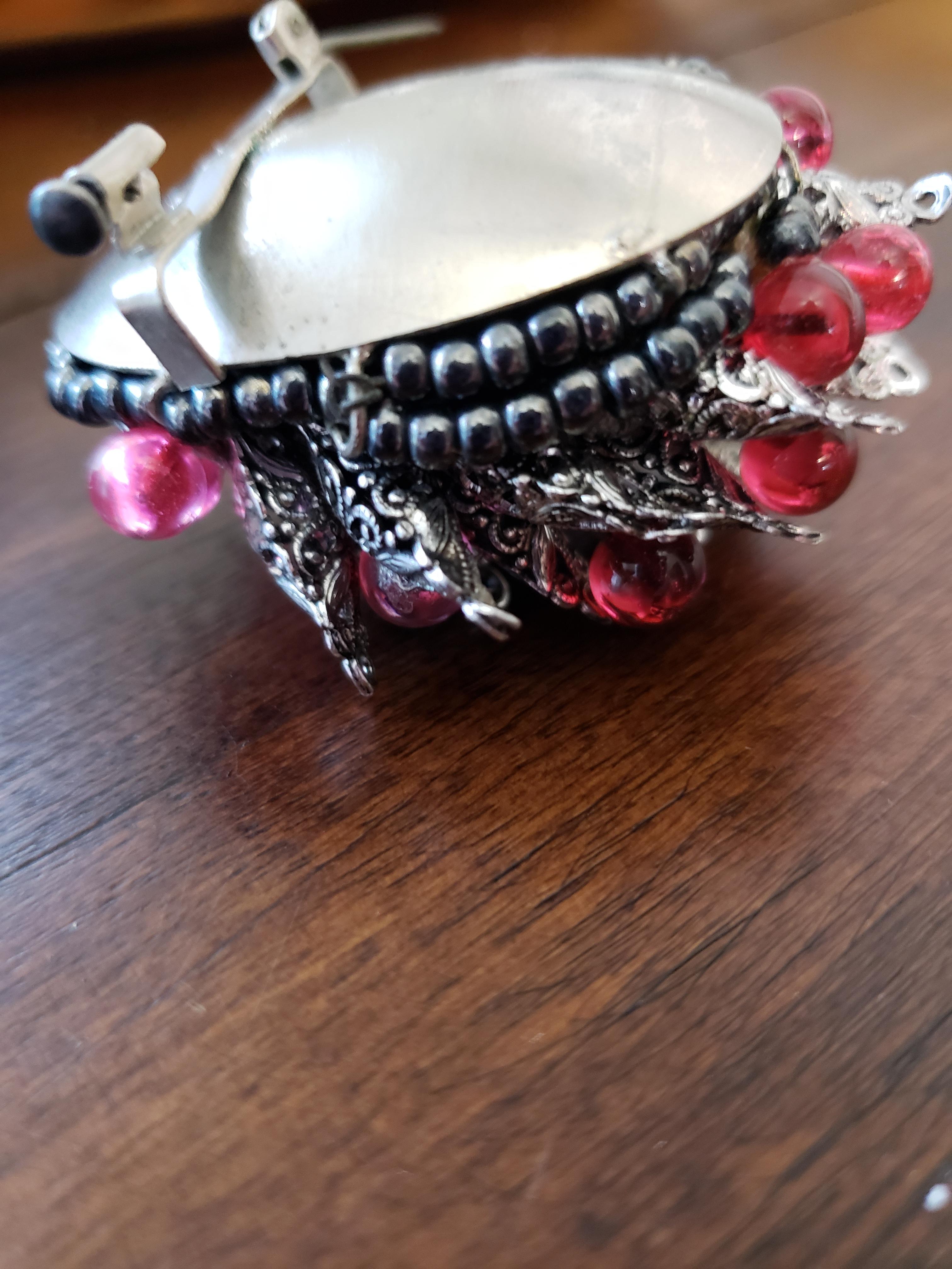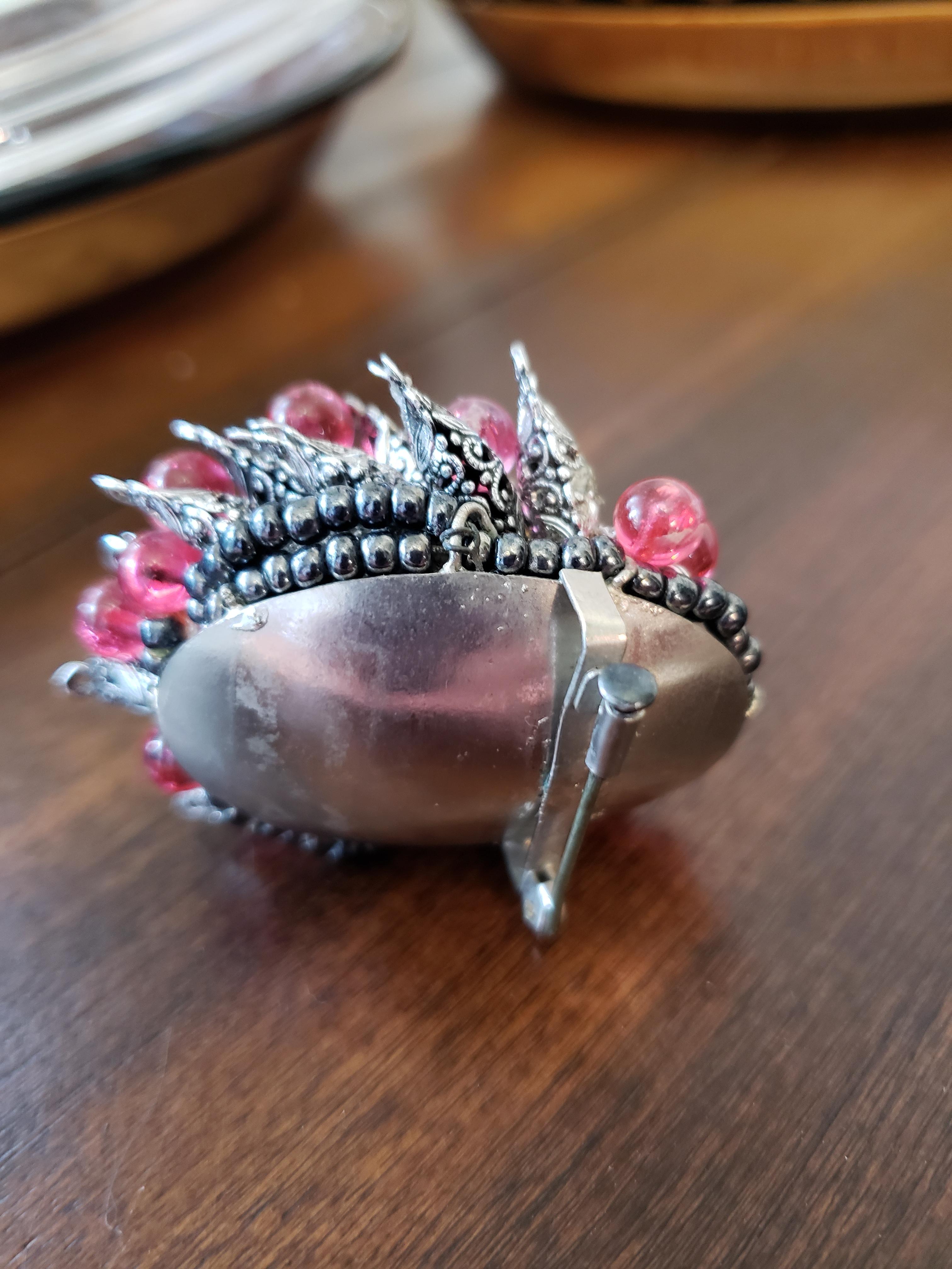 Hi. I'm new here and I wanted to start out by thanking you all for being so helpful. I bought this brooch at a yard sale and I've searched high and low for something similar on the internet and can't find anything. I'm wondering who made it and what time period it may be from. Any thoughts, suggestions, or information is greatly appreciated. Thank you