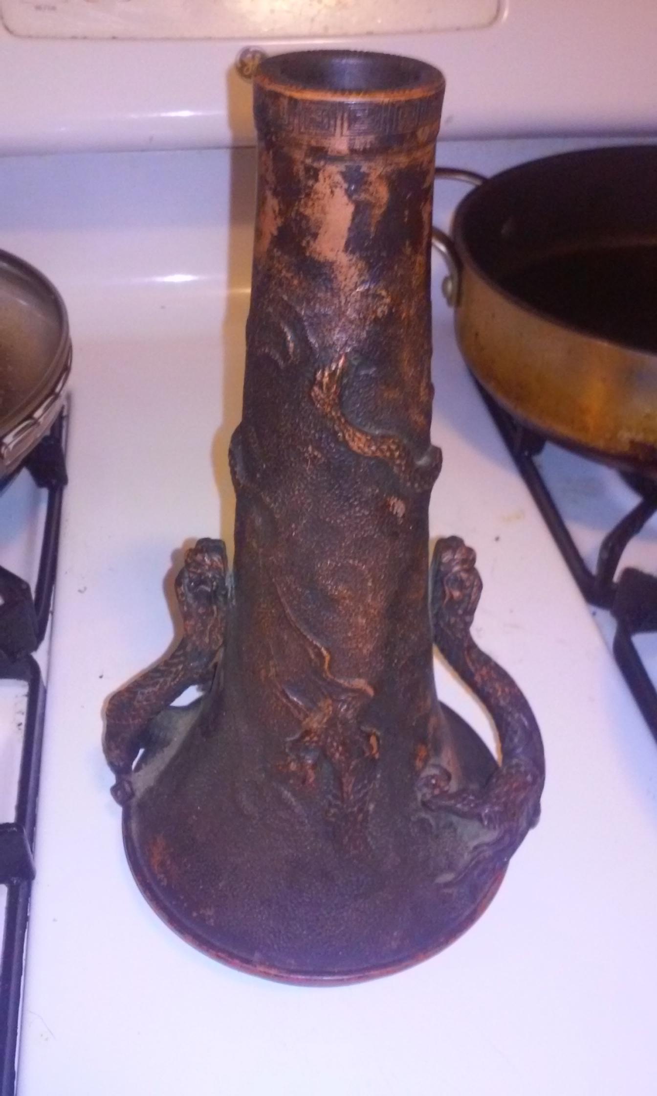 unique brown Dragon handled vase or candle stick holder