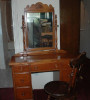 Along with this vanity there is a bed ( head board and foot board ), Tall bureau with mirror, Long bureau with mirror. The only piece I seem to be missing is the seat that goes with the vanity. It must have been broken or lost and the original owners replaced it with a different one.