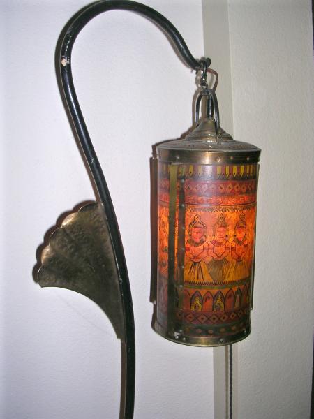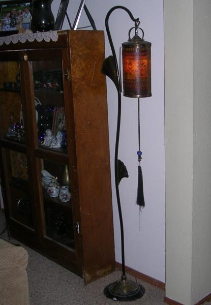 This is a floor lamp with brass accents, original tassle pull and a hand painted paper shade with a signature that is very small, hard to read and even harder to photograph. The signature looks like is says "Berwick Steine". Lamp came with a standing ash tray that may or may not be part of a set. I have searched the internet and antique shops and have never found another lamp like this.