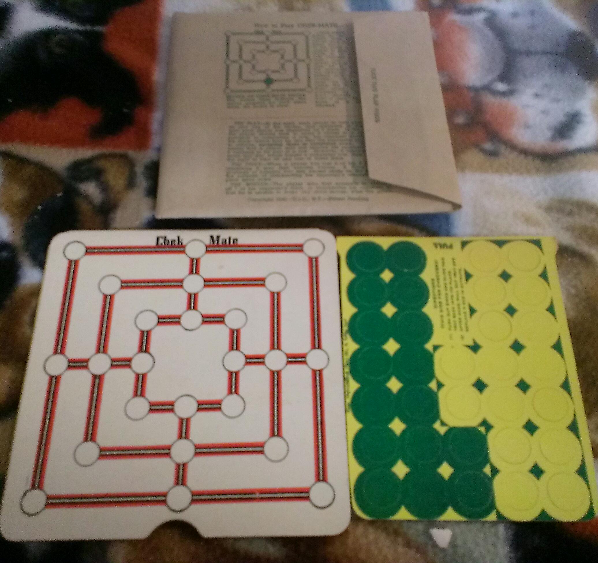 Chek mate and checkers and chessfrom unique items company New York New York copyright 1941 on one side and copyright 1942 on the other side looks brand new still in perfect condition.