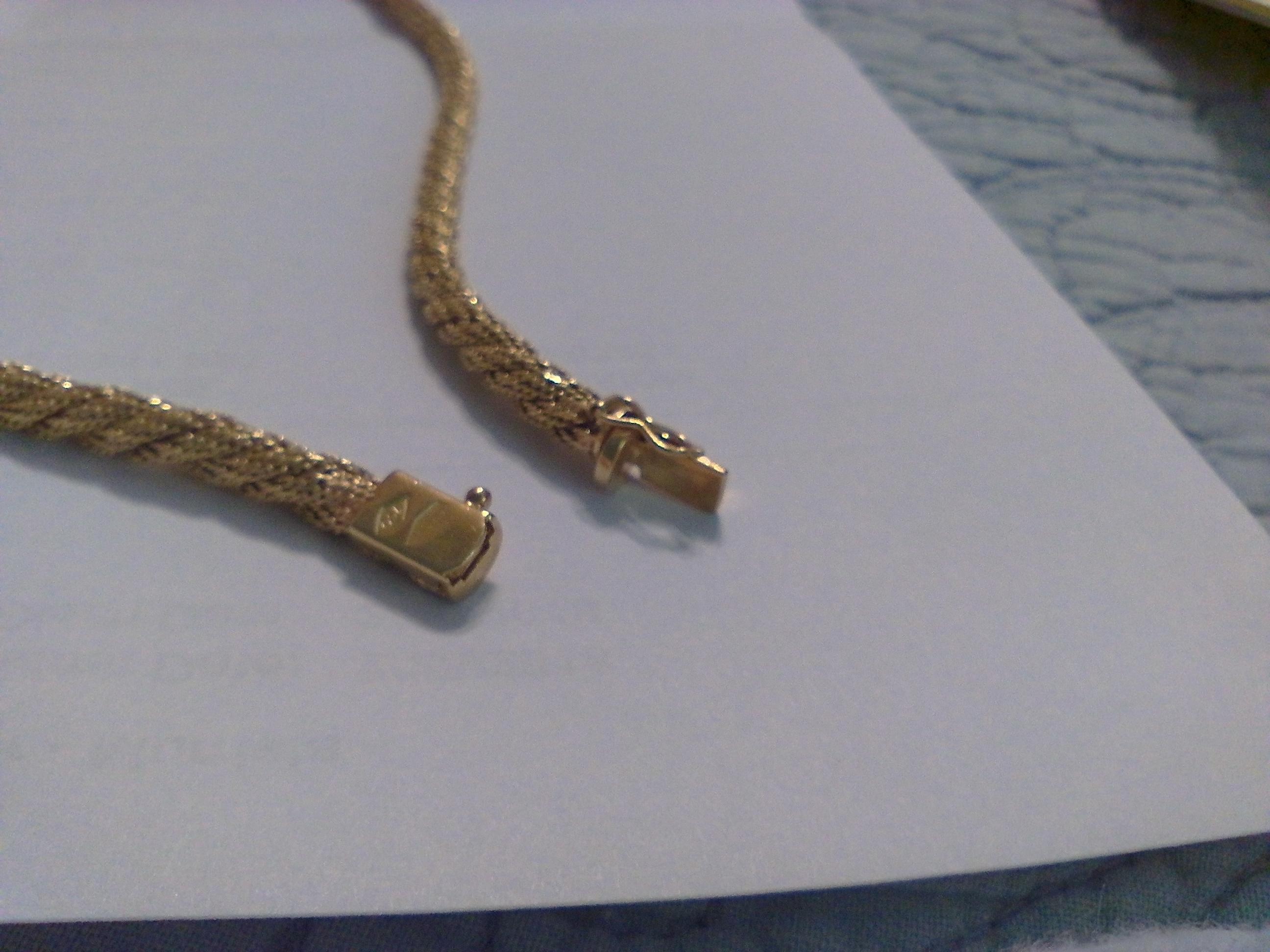 Distinguishing marks On the bottom side of male part of clasp it's stamps ITALY on the female part of clasp there is a triangle like shape with 750 in it, then above this is another number stamped 523?? I cannot make out the last two numbers